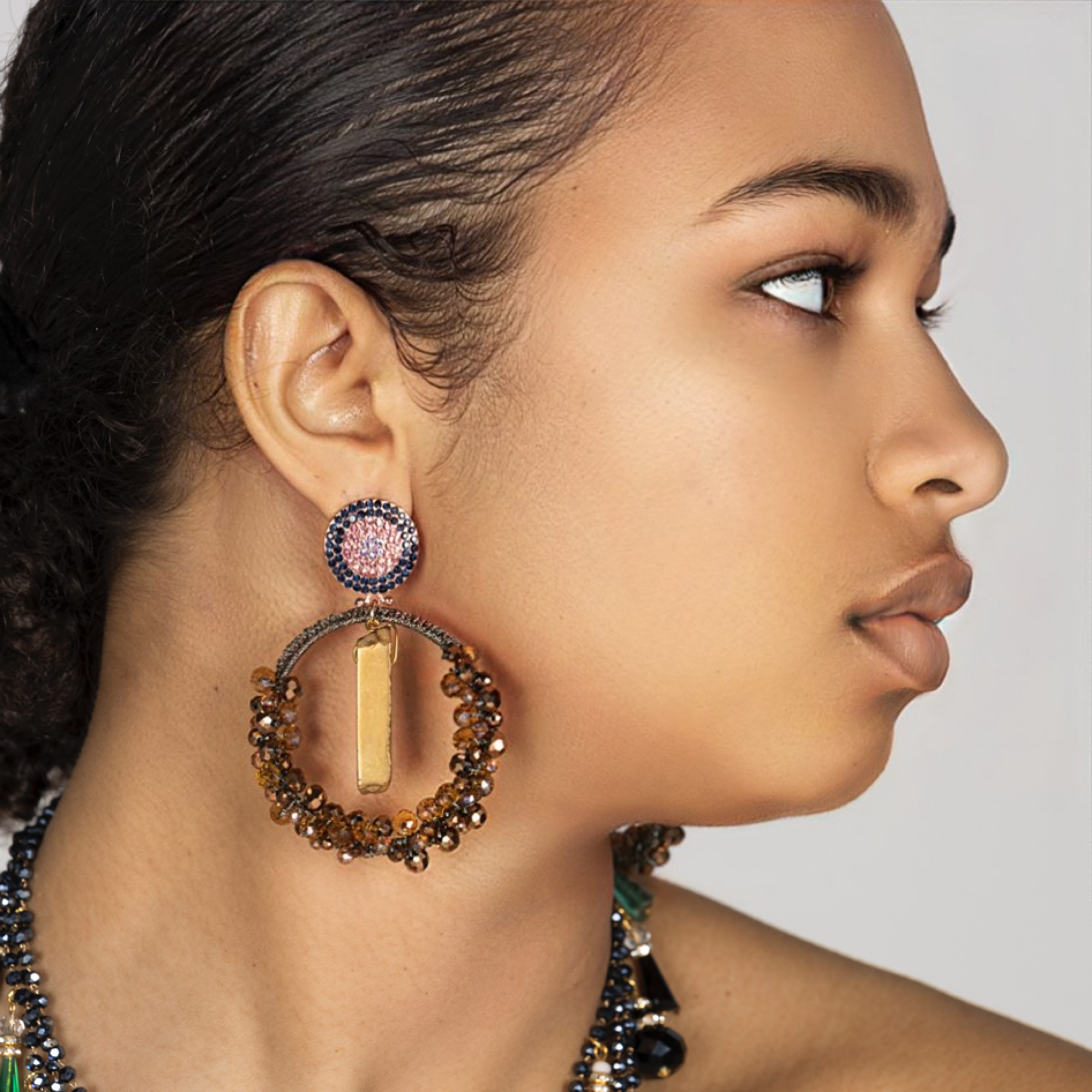 These large hoop earrings will have you ready to party in the blink of an eye! Shine all day and night long Dit product is een Bijoux ibiza. The large hoops are adorned with honey coloured crystal beads. Our bijoux are designed with great care and every piece is made by the hand Dit product is een Jewelry for women. Escape the ordinary and discover the bright colours and graceful details Dit product is een Handmade jewelry. Our bijoux collection and designs symbolise self-expression. All pieces are made of 925 sterling silver featuring an 18-k gold-plated finish. Also, all gems we use have a certificate of authenticity. That makes our jewellery even more precious, and trustworthy. You’ll cherish this accessory for many more years to come. These earrings come as a pair. Made in China & Brazil.