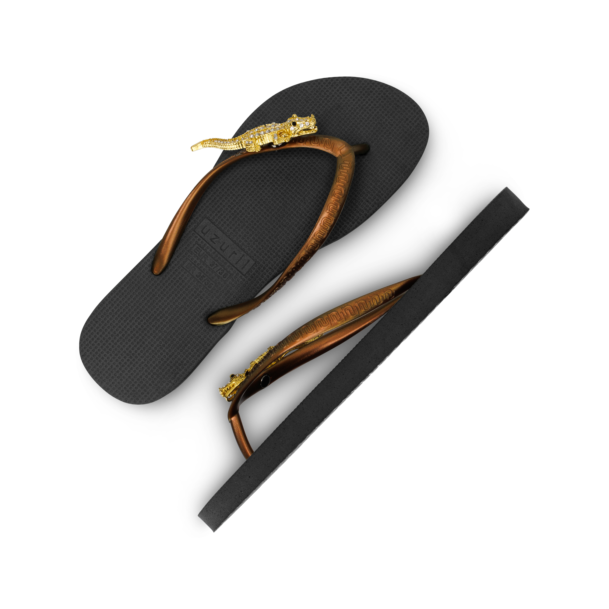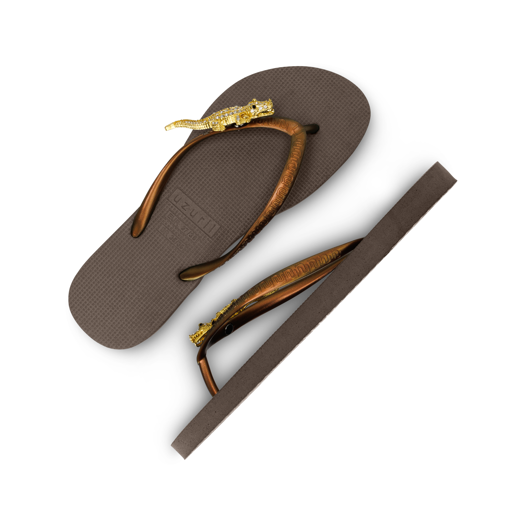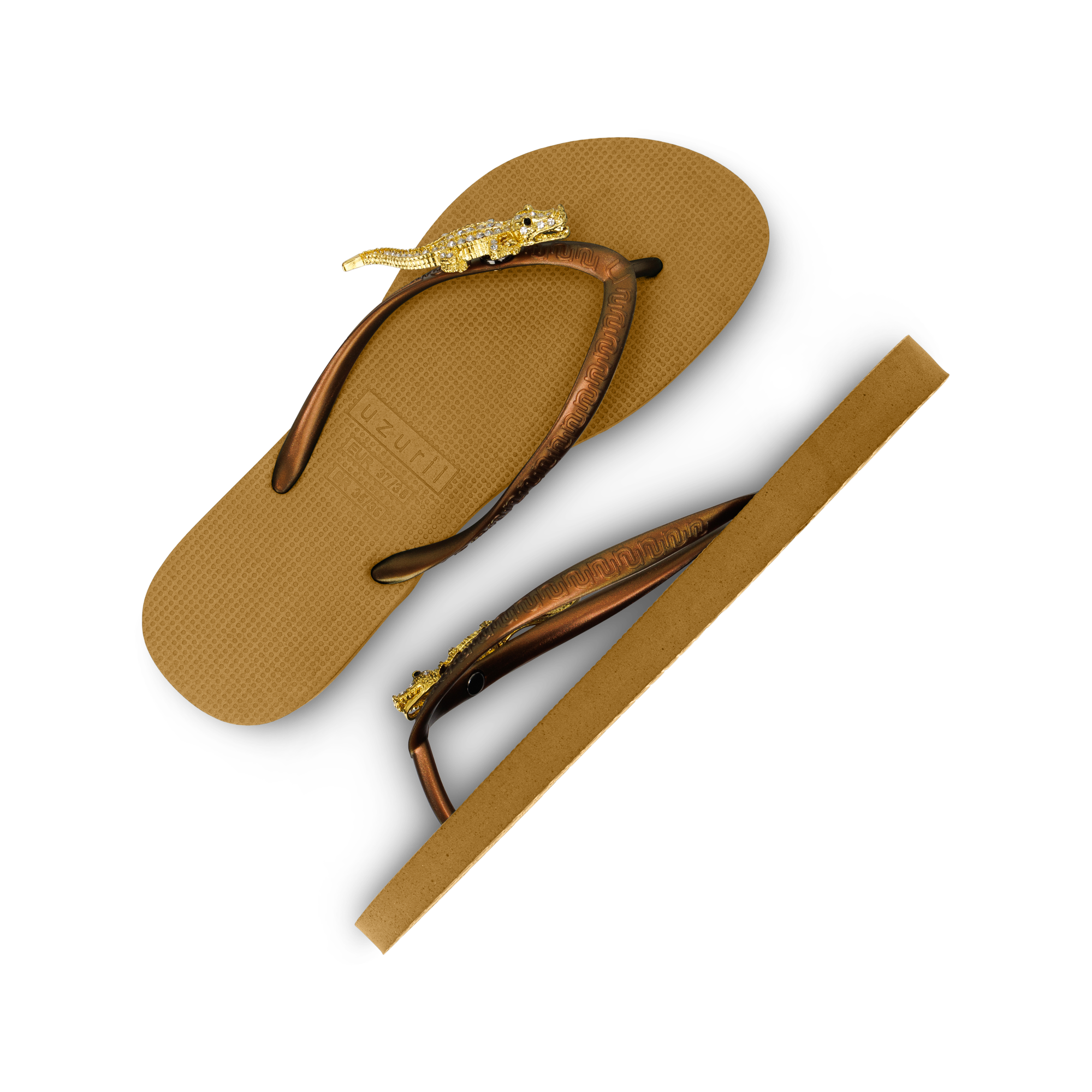 Die Gold Crocodile Switch Hausschuhe von Uzurii Luxury Footwear redefinieren Entspannung mit einem Hauch von Luxus. Perfekt für Frauen, die eine gemütliche und gleichzeitig stilvolle Wahl suchen, heben sie das entspannte Zuhause mit ihrer eleganten Handwerkskunst auf ein neues Level.