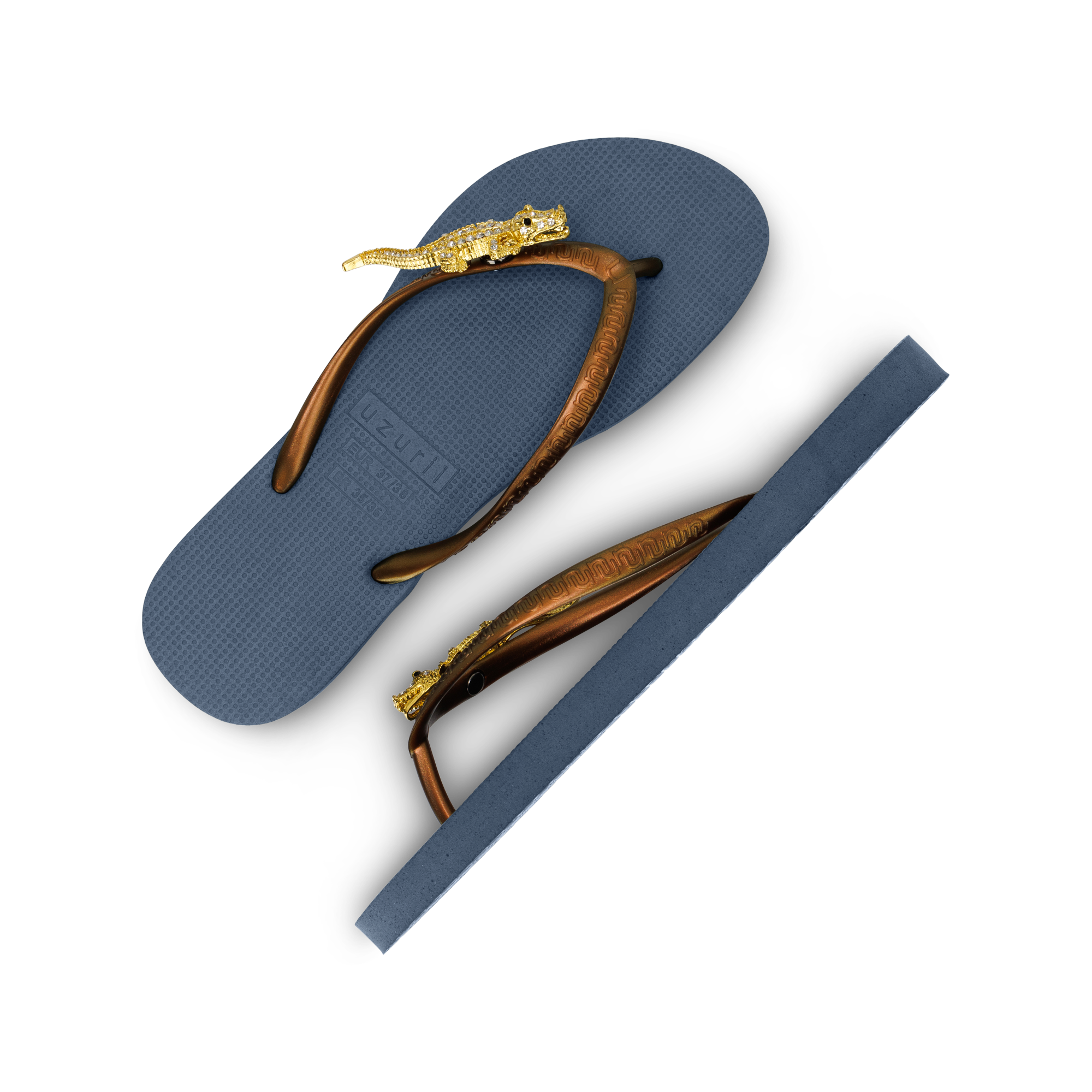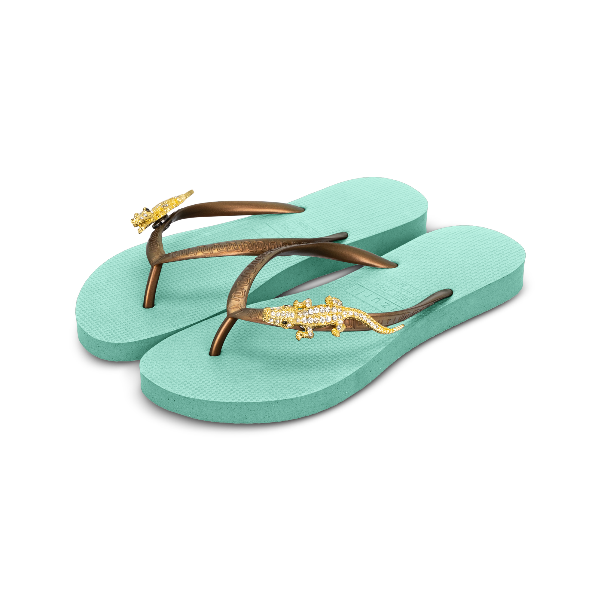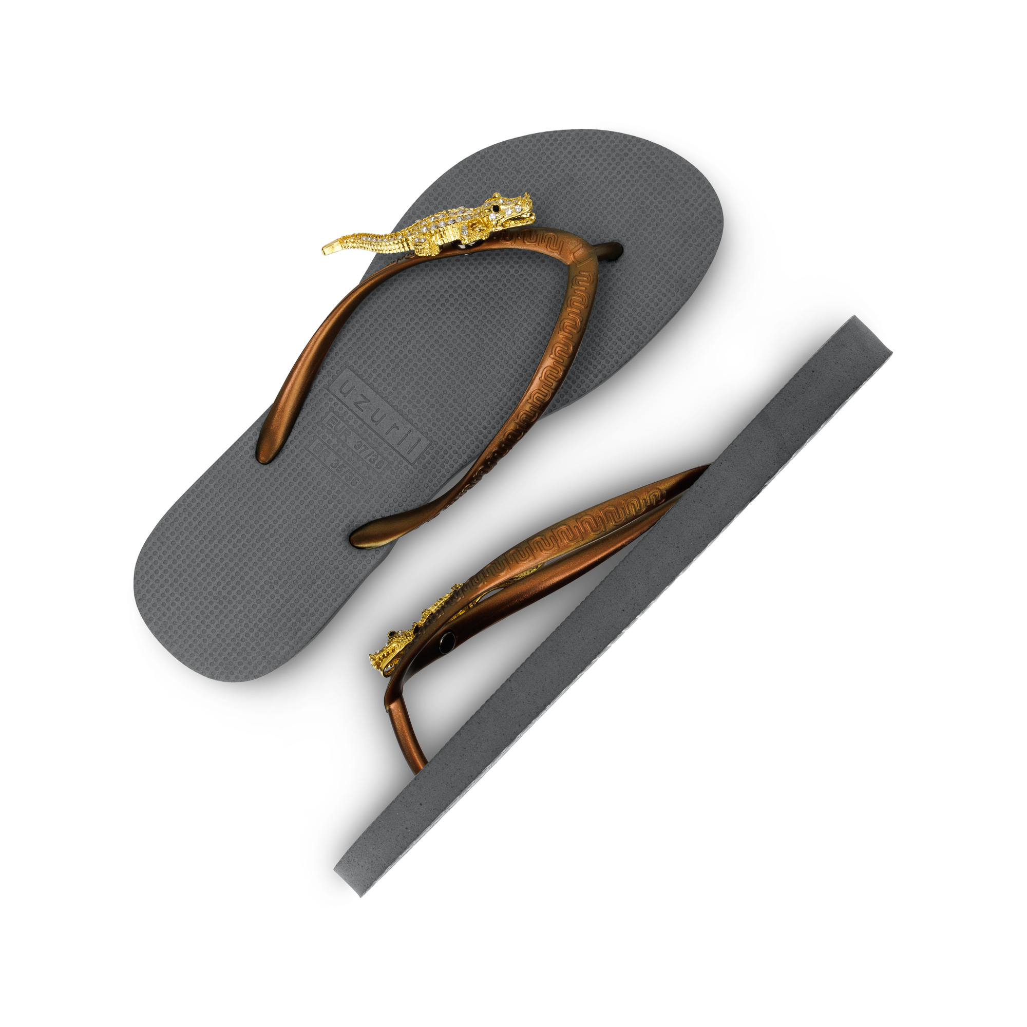 Die Gold Crocodile Switch Hausschuhe von Uzurii Luxury Footwear redefinieren Entspannung mit einem Hauch von Luxus. Perfekt für Frauen, die eine gemütliche und gleichzeitig stilvolle Wahl suchen, heben sie das entspannte Zuhause mit ihrer eleganten Handwerkskunst auf ein neues Level.