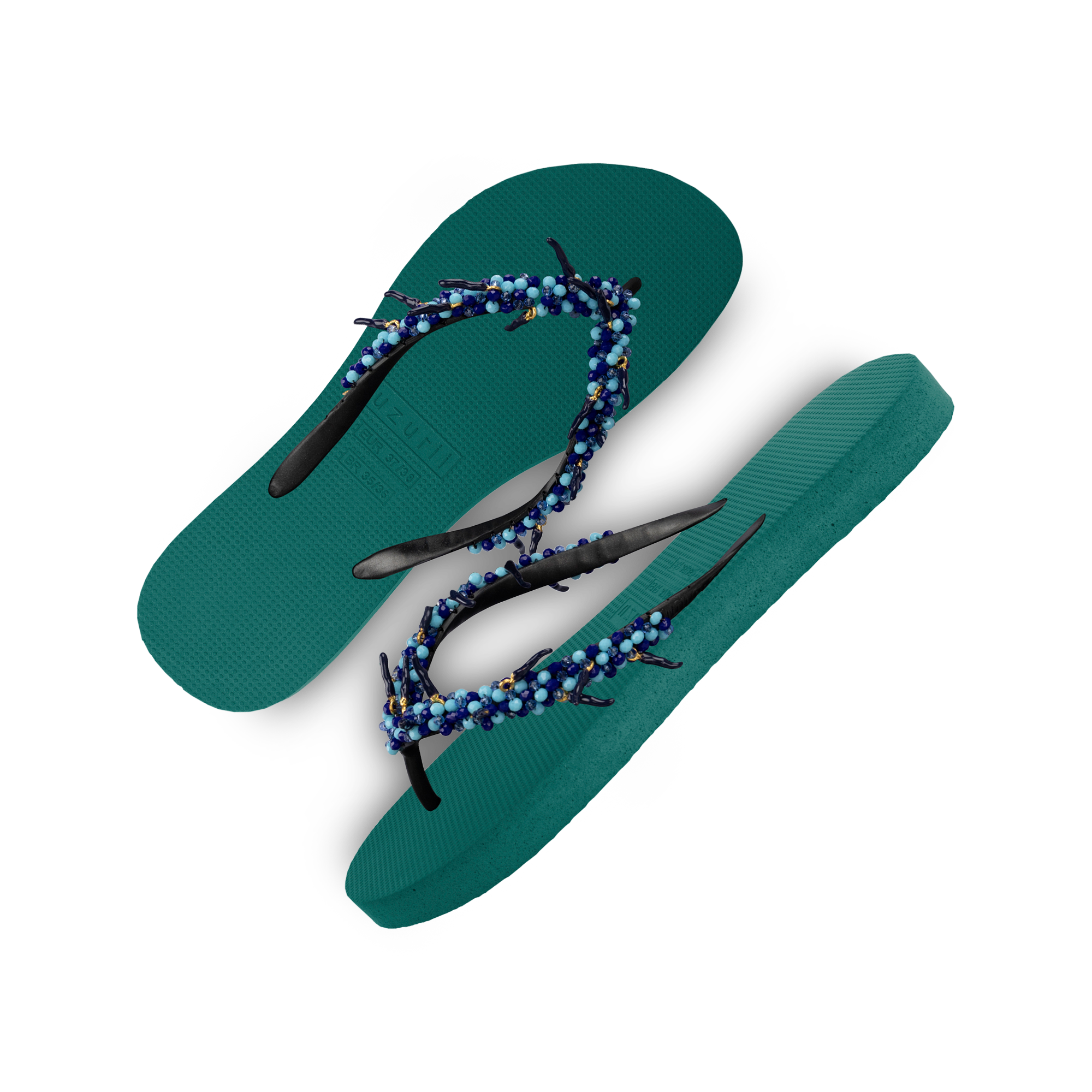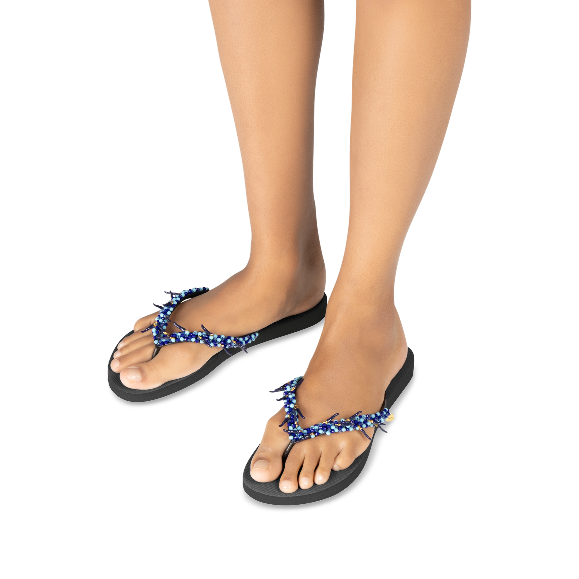 Fügen Sie Ihrem Look mit unseren Peppi Zehentrennern etwas Pep hinzu! Charakteristisch für diese Schuhe sind die kleinen schwarzen Pfefferkörner. Die kleinen türkisfarbenen Steine verleihen einen Hauch von Farbe. Perfekt kombinierbar mit unseren Peppi Ohrringen! Unsere Slipper sind einzigartig, handgefertigt und mit Sorgfalt und Liebe entworfen. Die Sohle, die sich seidig weich auf Ihrem Fuß anfühlt, besteht aus Gummi. Die Riemen sind aus PVC gefertigt. Das V zeichnet sich durch das originale Uzurii-Logo auf den Riemen aus. Unsere Slipper werden in China und Brasilien hergestellt.