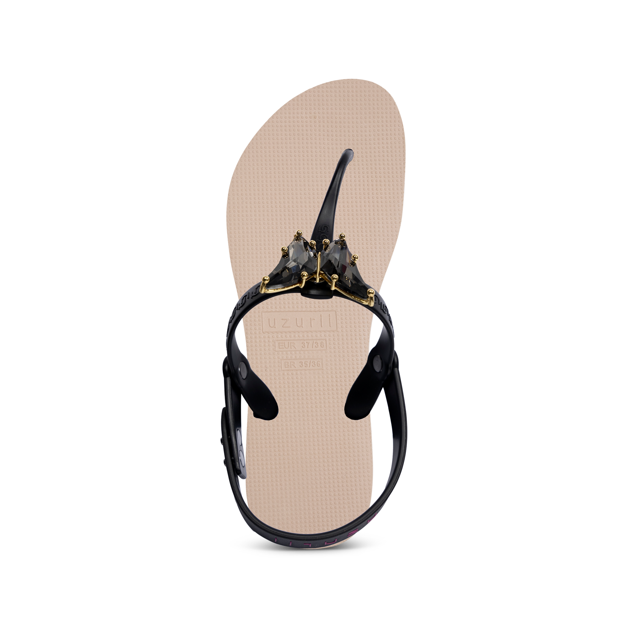 Die Selena Diamond Blue ist bekannt für ihren großen, silberfarbenen Stein in Form eines Schmetterlings. Der goldene Rand um den großen Stein verleiht ein zusätzliches elegantes Gefühl. Hier kommt es auf die Details an. Mit einem sogenannten Wechselknopf dekoriert, können Sie den Knopf (Stein) selbst mit einer Vielzahl von Optionen aus unserer Accessoire-Linie wechseln. Das V ist durch das originale Uzurii-Logo über den Riemen gekennzeichnet. Auf der Suche nach mehr Komfort? Dann sind Sie mit der Selena genau richtig. Der Riemen über der Ferse bietet Ihnen zusätzliche Unterstützung. Unsere Hausschuhe sind einzigartig, handgefertigt und mit Liebe zum Detail gestaltet. Die Sohle, die sich seidig weich auf Ihrem Fuß anfühlt, besteht aus Gummi. Die Riemen sind aus PVC gefertigt. Das V zeichnet sich durch das originale Uzurii-Logo auf den Riemen aus. Unsere Hausschuhe werden in China und Brasilien hergestellt.