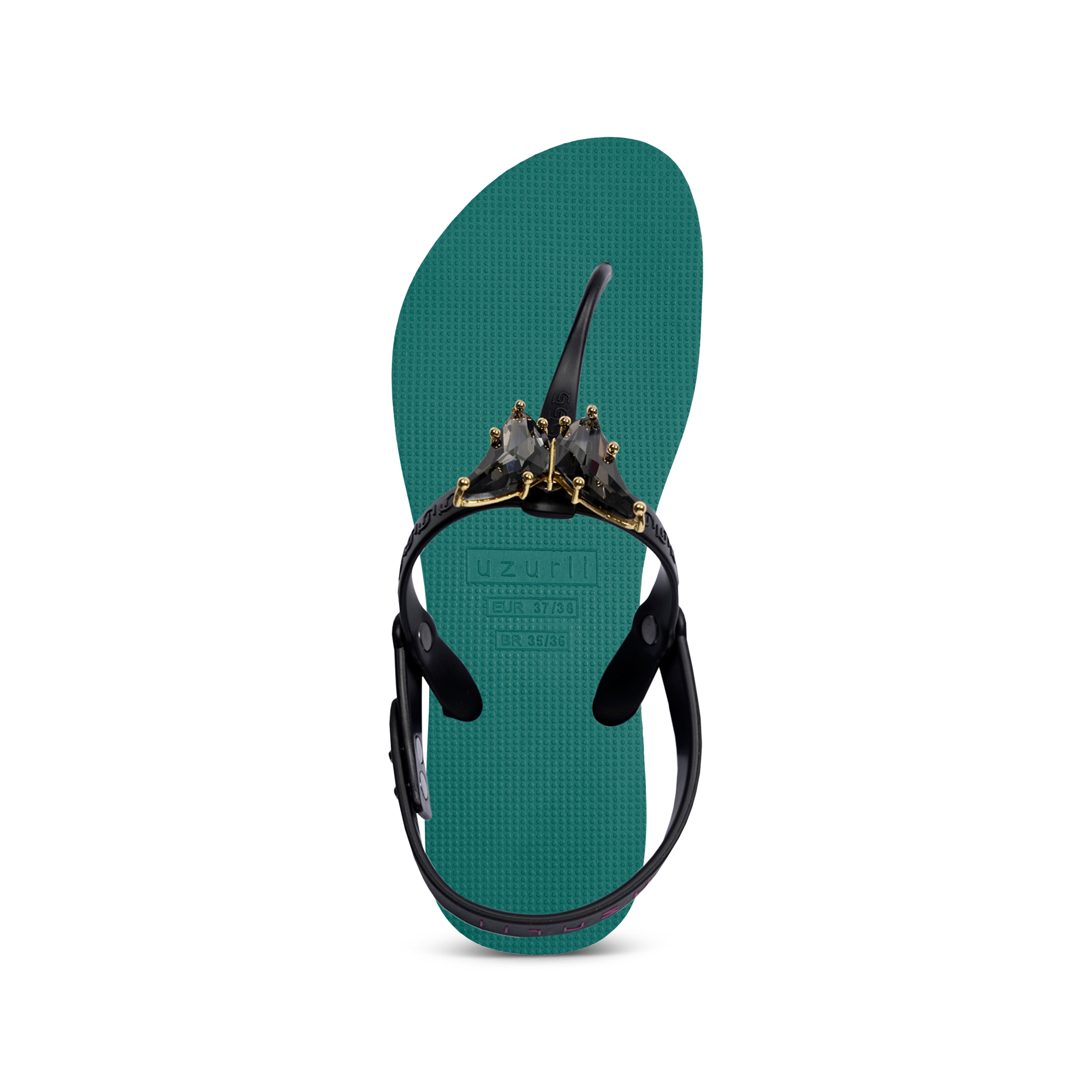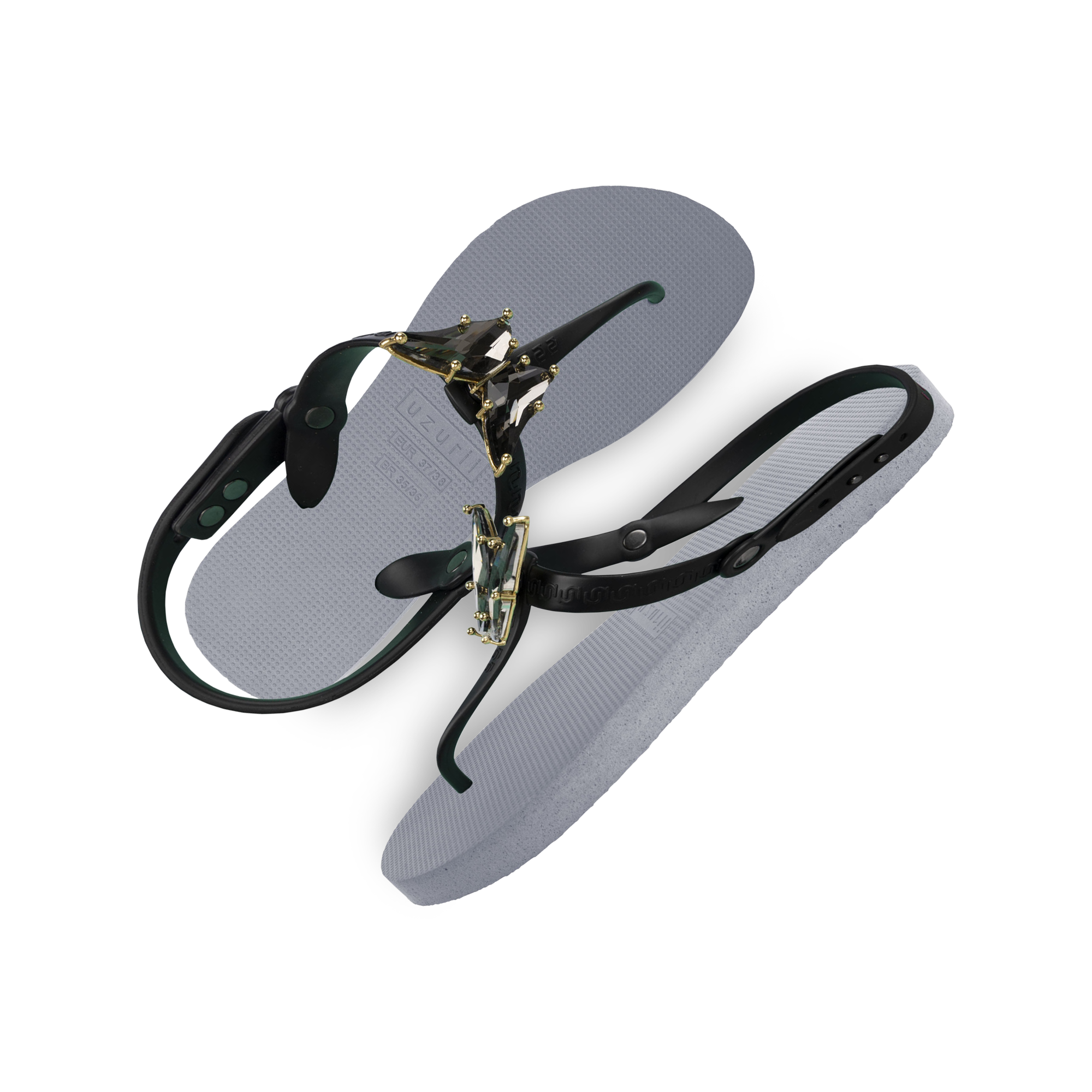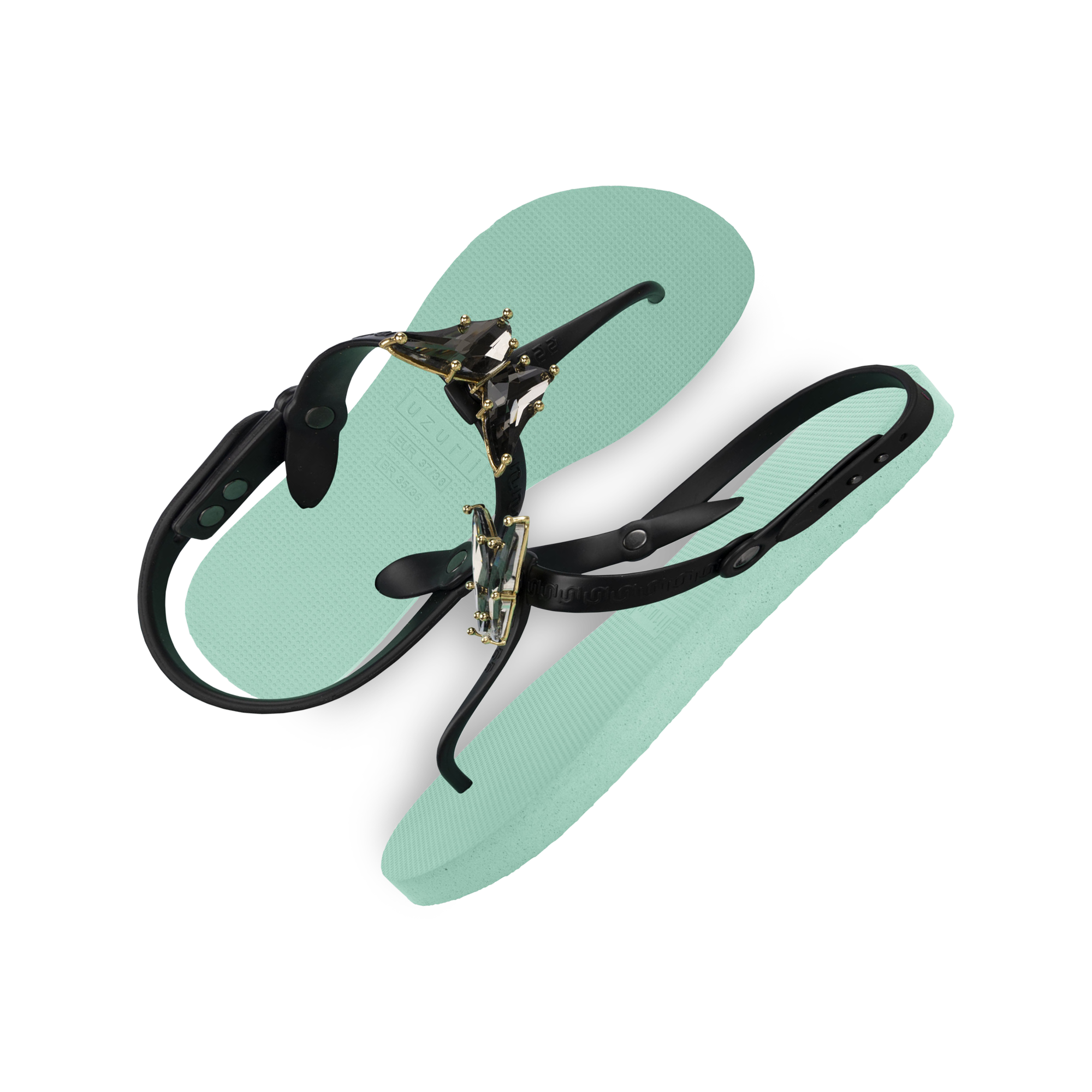 Die Selena Diamond Blue ist bekannt für ihren großen, silberfarbenen Stein in Form eines Schmetterlings. Der goldene Rand um den großen Stein verleiht ein zusätzliches elegantes Gefühl. Hier kommt es auf die Details an. Mit einem sogenannten Wechselknopf dekoriert, können Sie den Knopf (Stein) selbst mit einer Vielzahl von Optionen aus unserer Accessoire-Linie wechseln. Das V ist durch das originale Uzurii-Logo über den Riemen gekennzeichnet. Auf der Suche nach mehr Komfort? Dann sind Sie mit der Selena genau richtig. Der Riemen über der Ferse bietet Ihnen zusätzliche Unterstützung. Unsere Hausschuhe sind einzigartig, handgefertigt und mit Liebe zum Detail gestaltet. Die Sohle, die sich seidig weich auf Ihrem Fuß anfühlt, besteht aus Gummi. Die Riemen sind aus PVC gefertigt. Das V zeichnet sich durch das originale Uzurii-Logo auf den Riemen aus. Unsere Hausschuhe werden in China und Brasilien hergestellt.