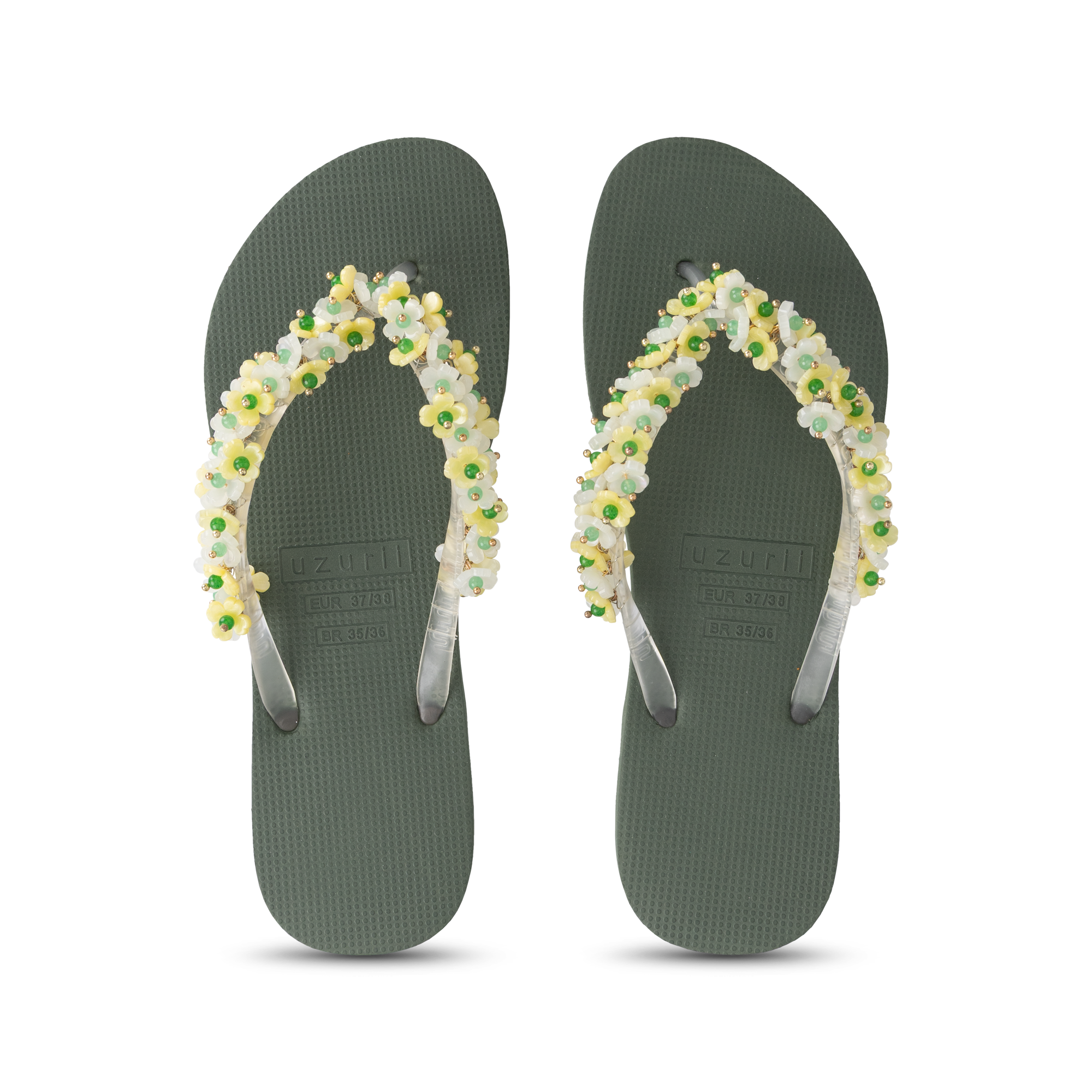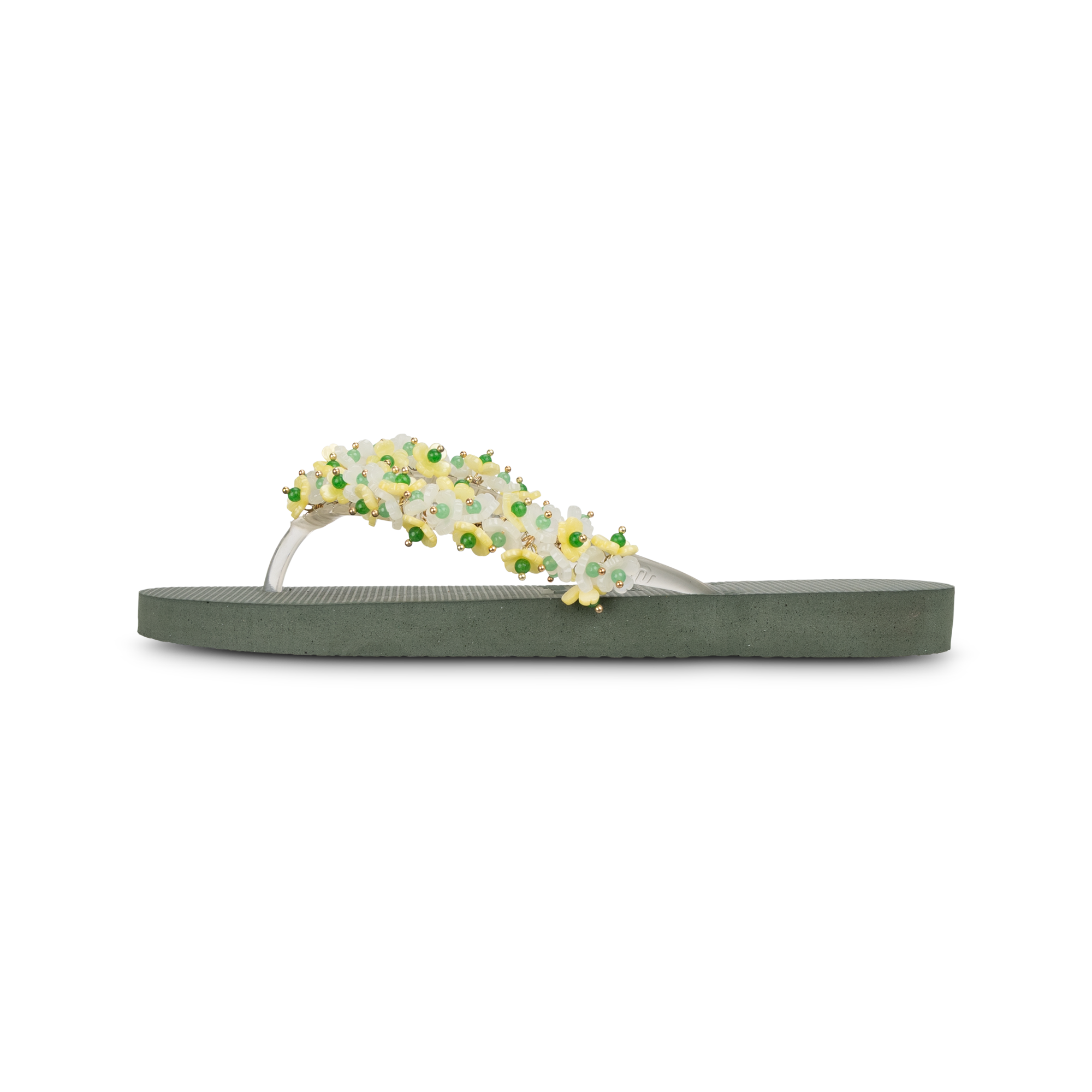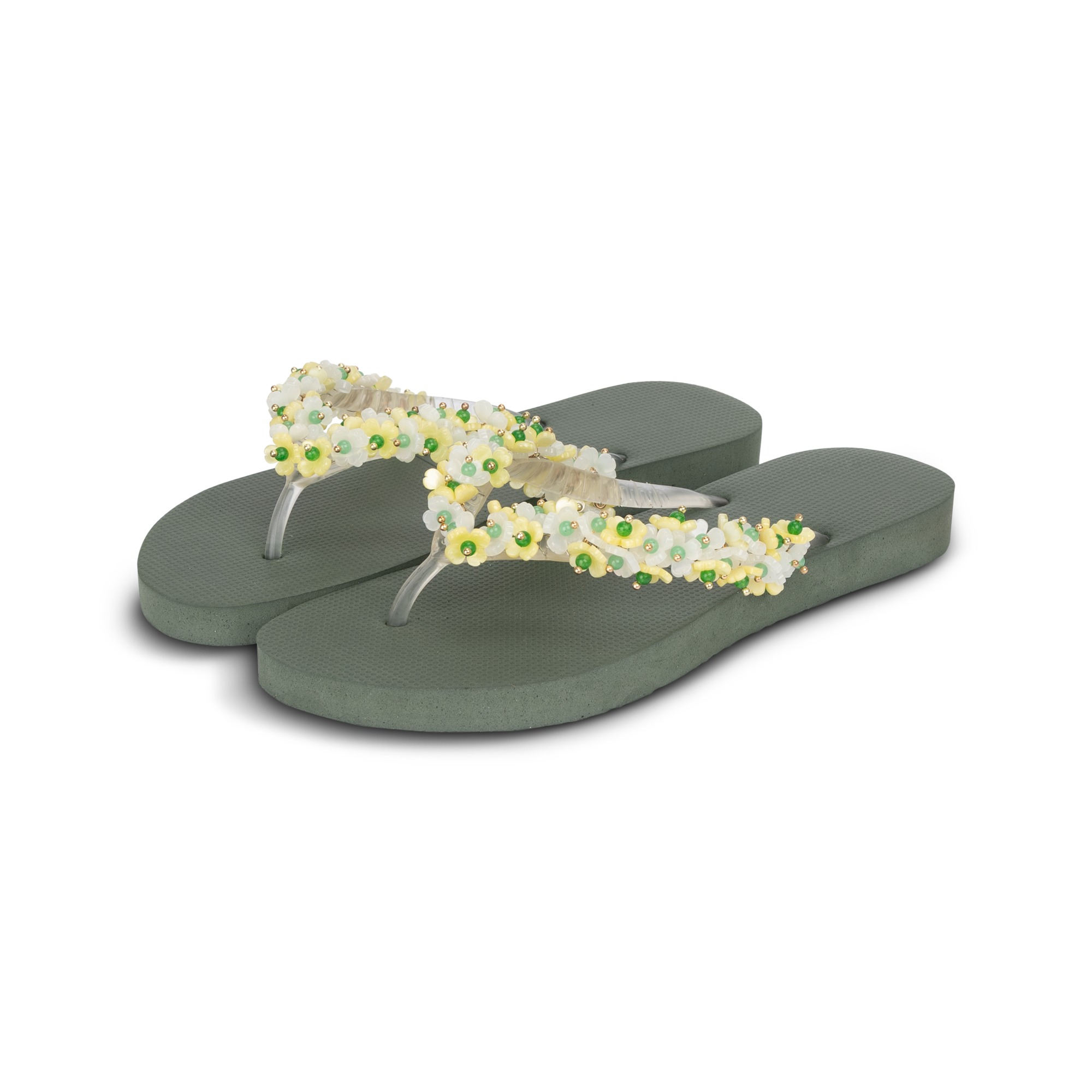 Die Tulum Bloom ist eine Hommage an sommerliche Eleganz mit einem natürlichen Twist. Diese handgefertigte Sandale kombiniert eine hochwertige Sohle mit reich verzierten Riemen, geschmückt mit Blumen, Perlen und dezenten Glanzdetails. Jedes Detail wird von Hand angebracht, wodurch jedes Paar ein Unikat ist. Die weiche, zugleich stabile Sohle bietet optimalen Komfort, während die dekorativen Blumen für eine feminine und luxuriöse Ausstrahlung sorgen. Perfekt für einen sommerlichen Spaziergang, ein Beach-Club-Lunch oder einen stilvollen City-Look.