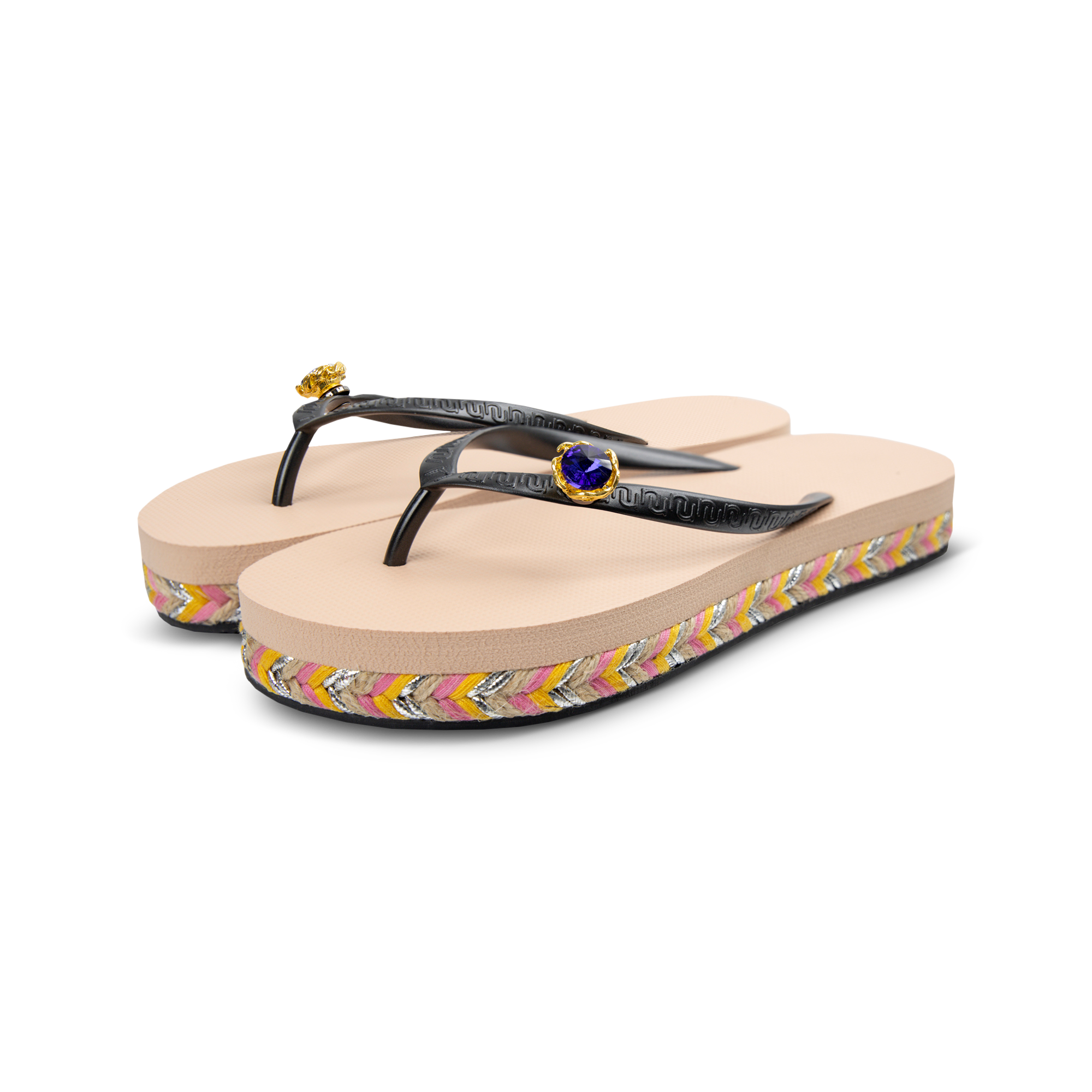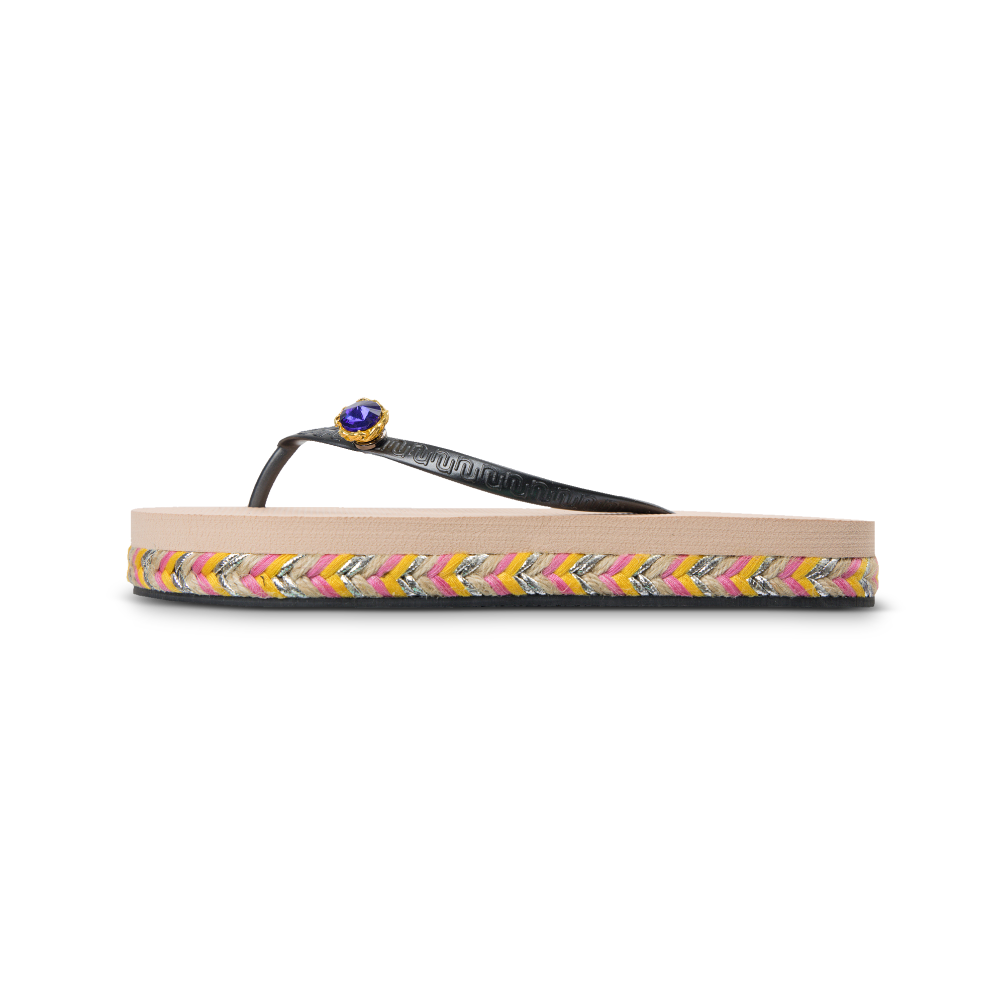 Ein einfaches Design, aber mit einem verspielten Twist dank der Rafia-Sohle. Bei der Gestaltung des Raffia Switch haben wir mit verschiedenen Materialien gespielt und diese kombiniert, wie Gummi, Rafia und PVC. Die Plattformsohle wird von Hand gefertigt, sodass die Farben des Materials wirklich zur Geltung kommen. Dekoriert mit einem sogenannten Switch-Button können Sie den Knopf (Stein) selbst mit einer großen Auswahl aus unserer Accessoire-Linie wechseln. Verleihen Sie Ihrem Paar Flip-Flops im Handumdrehen einen neuen Look. Das V wird durch das originale Uzurii-Logo über den Riemen geschmückt.