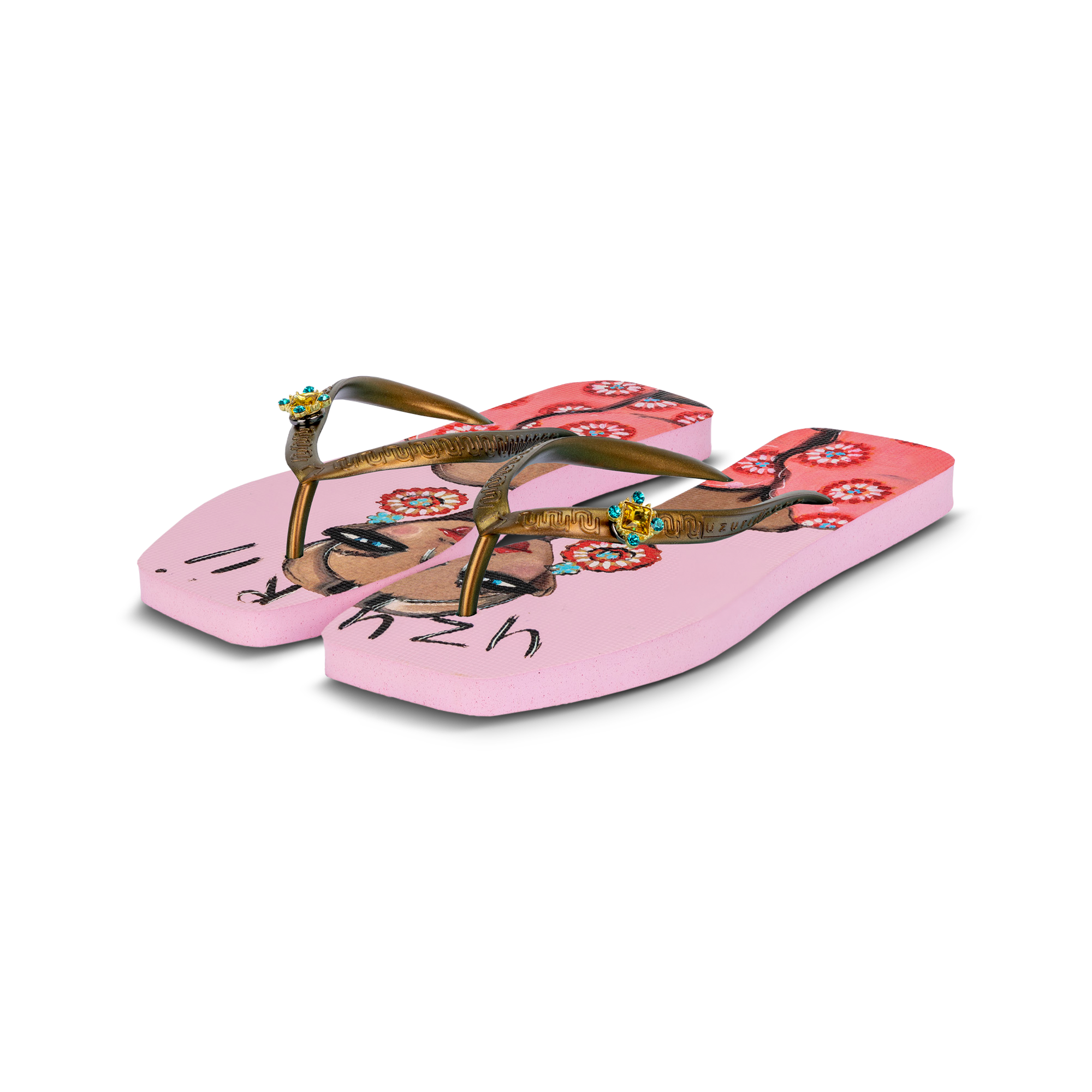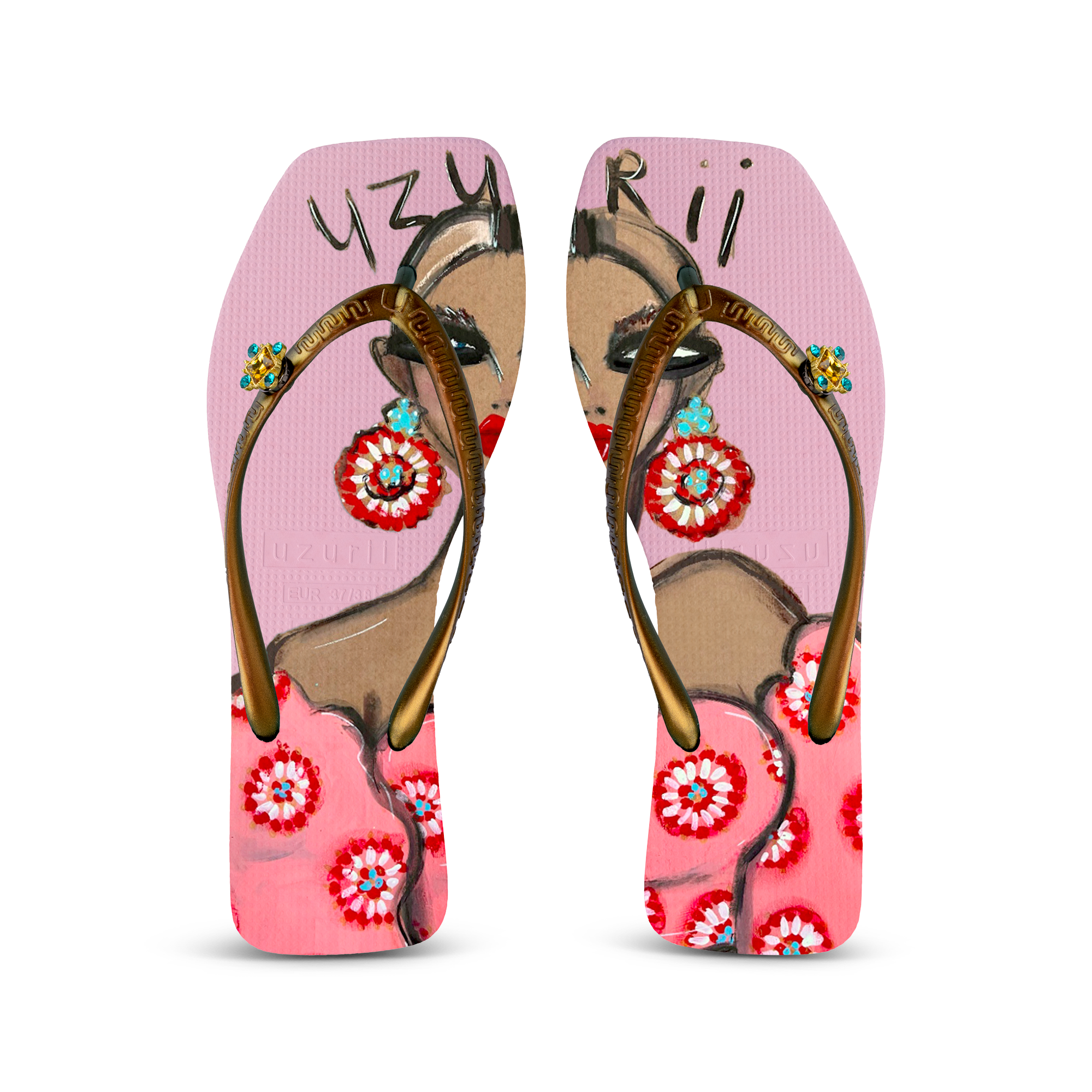 Der Beach Printed Claudia ist nicht wie alle anderen, genau wie du! Die quadratische Plattformsohle ist mit einer handgefertigten Zeichnung verziert (optional: für uns entworfen von Noortje den Oudsten). Der Druck dieser Slipper ist lustig und verspielt. Der V-Riemen hat eine einfarbige Gestaltung und einen Druckknopf, mit dem du ganz einfach selbst den Schalter ändern kannst. Wähle aus einer großen Anzahl von Steinen aus unserer Zubehörlinie. So kannst du dein Paar Flip-Flops ganz einfach in einen neuen Look verwandeln! Unsere Slipper sind einzigartig, handgefertigt und mit Sorgfalt und Liebe gestaltet. Die Sohle, die sich seidig weich auf deinem Fuß anfühlt, besteht aus Gummi. Die Riemen sind aus PVC gefertigt. Der V-Riemen zeichnet sich durch das originale Uzurii-Logo auf den Riemen aus. Unsere Slipper werden in China und Brasilien hergestellt.