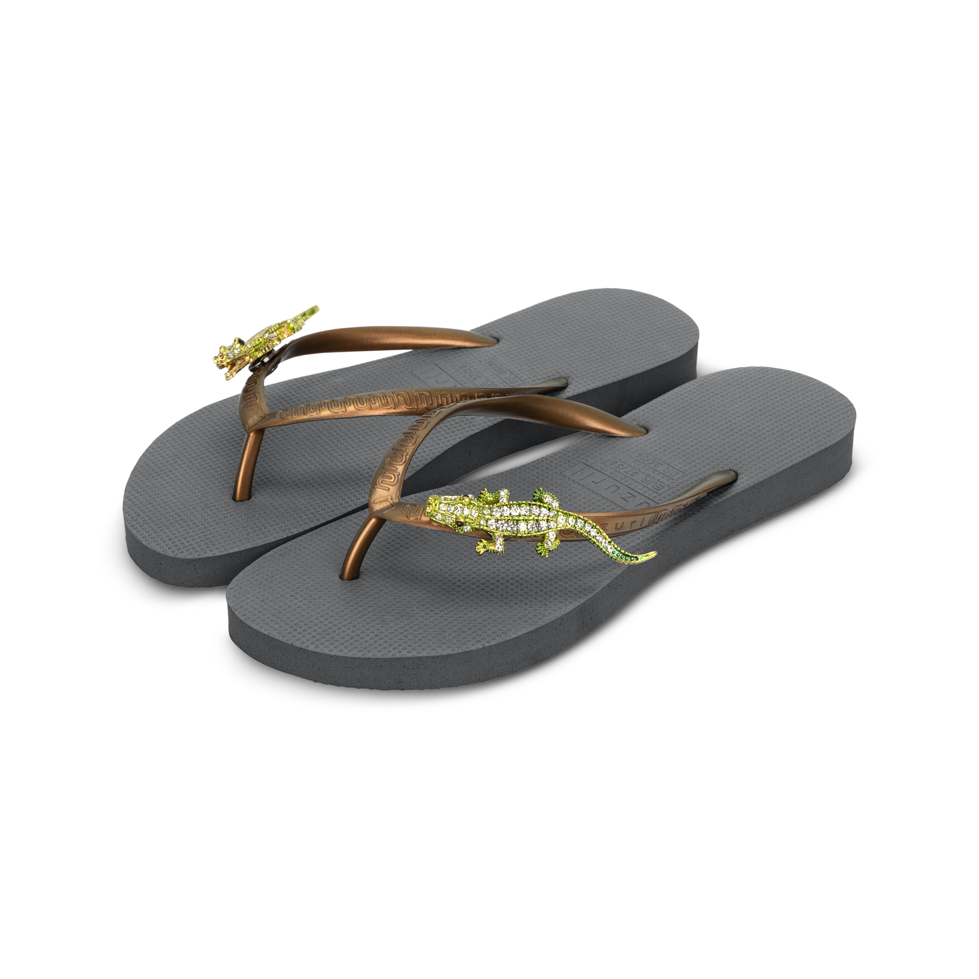 The Green Crocodile Switch slippers from Uzurii Luxury Footwear redefine relaxation with a hint of luxury. Perfect for women who seek a cozy yet stylish choice, they elevate home lounging with their elegant craftsmanship.