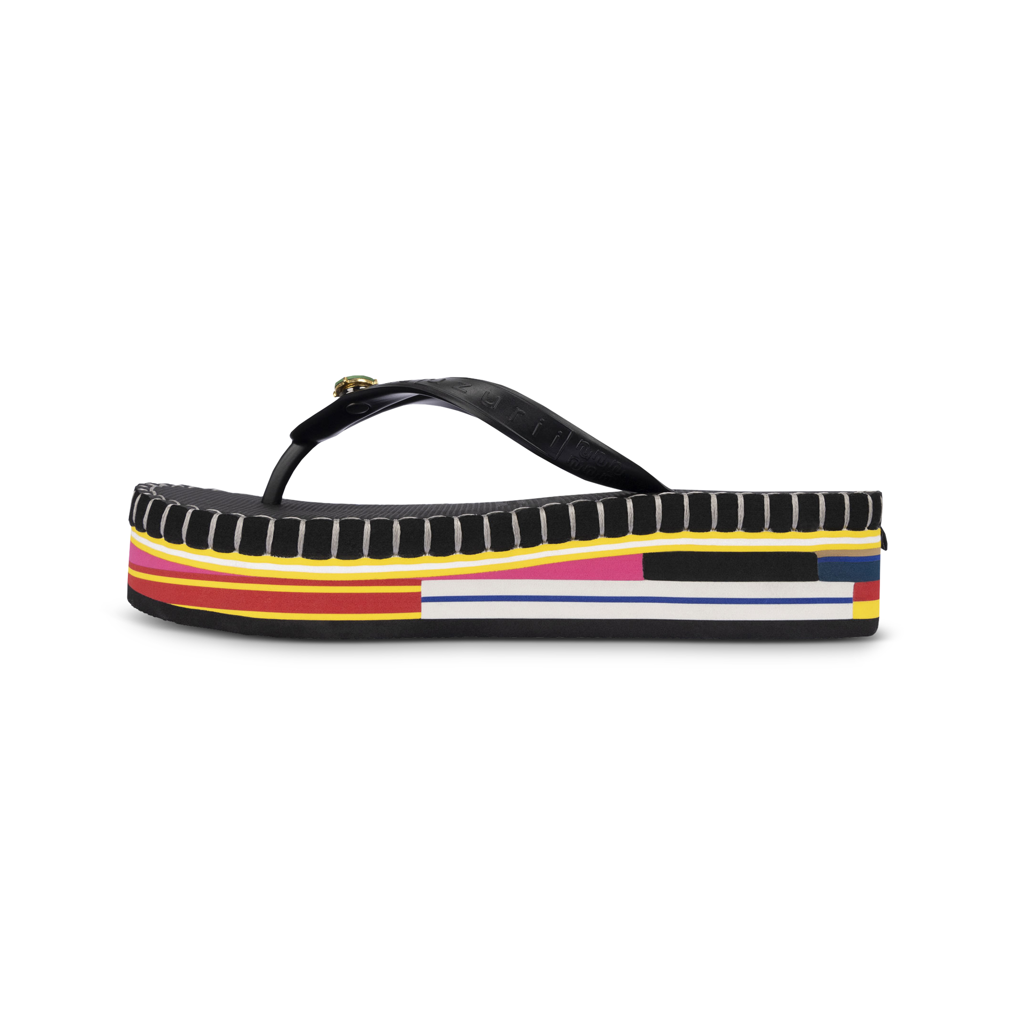 We got our inspiration for the Mondriaan Colorful slippers from the work of Piet Mondriaan. The colorful motif on the platform sole is reminiscent of the abstract painting style of the Dutch artist. The hand-stitched stitching gives the sandals an extra something. Thanks to the press stud on the V, you can easily change the switch button yourself. Choose from a large number of stones from our accessory line. This way you can easily transform your pair of slippers into a new look!Our slippers are unique, handmade and designed with attention. The sole, which feels silky soft on your foot, is made of rubber. The straps are made of PVC. The V is characterized by the original Uzurii logo on the straps. Our slippers are made in China and Brazil.