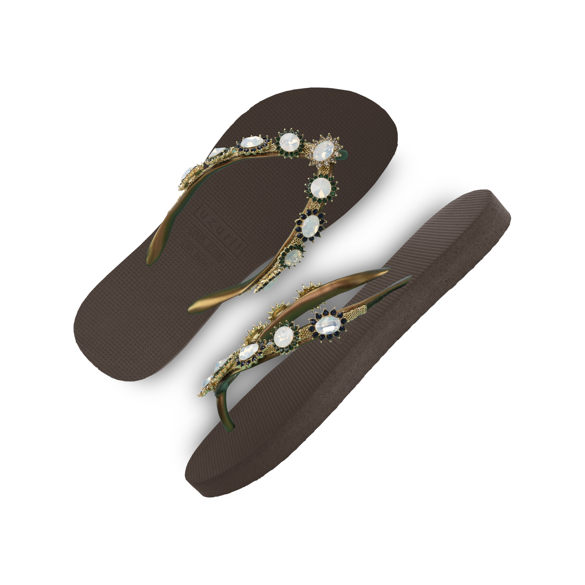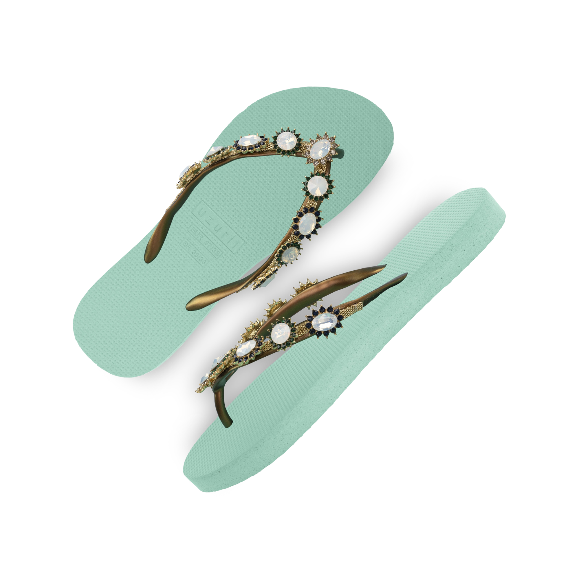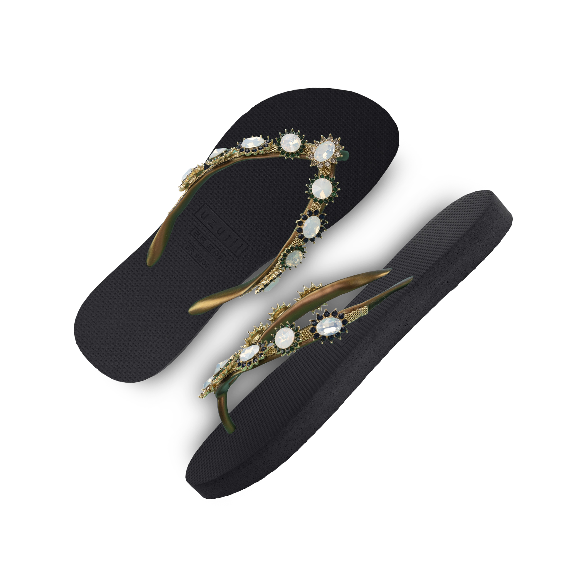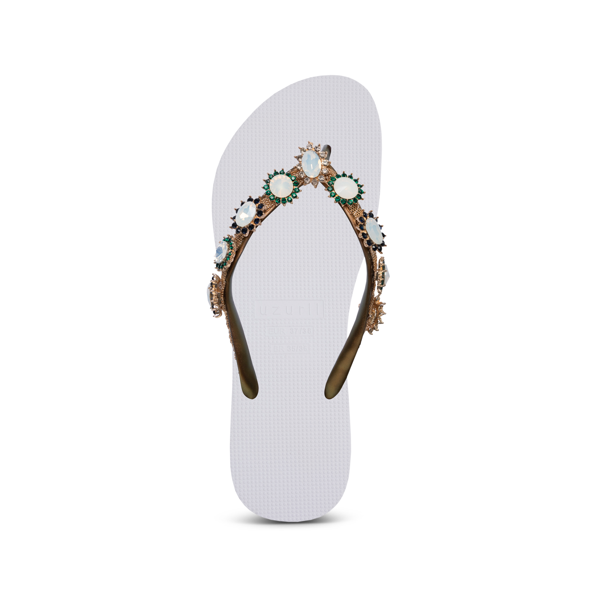 The design for these slippers is completely inspired by style icon Marilyn Monroe. She was known for her ultra-feminine looks. You can recognize the Pearl Monroe by its mother-of-pearl and colored stones. The V is covered with a shiny, silver chain.Our slippers are unique, handmade and designed with care and love. The sole, which feels silky soft on your foot, is made of rubber. The straps are made of PVC. The V is characterized by the original Uzurii logo on the straps. Our slippers are made in China and Brazil.