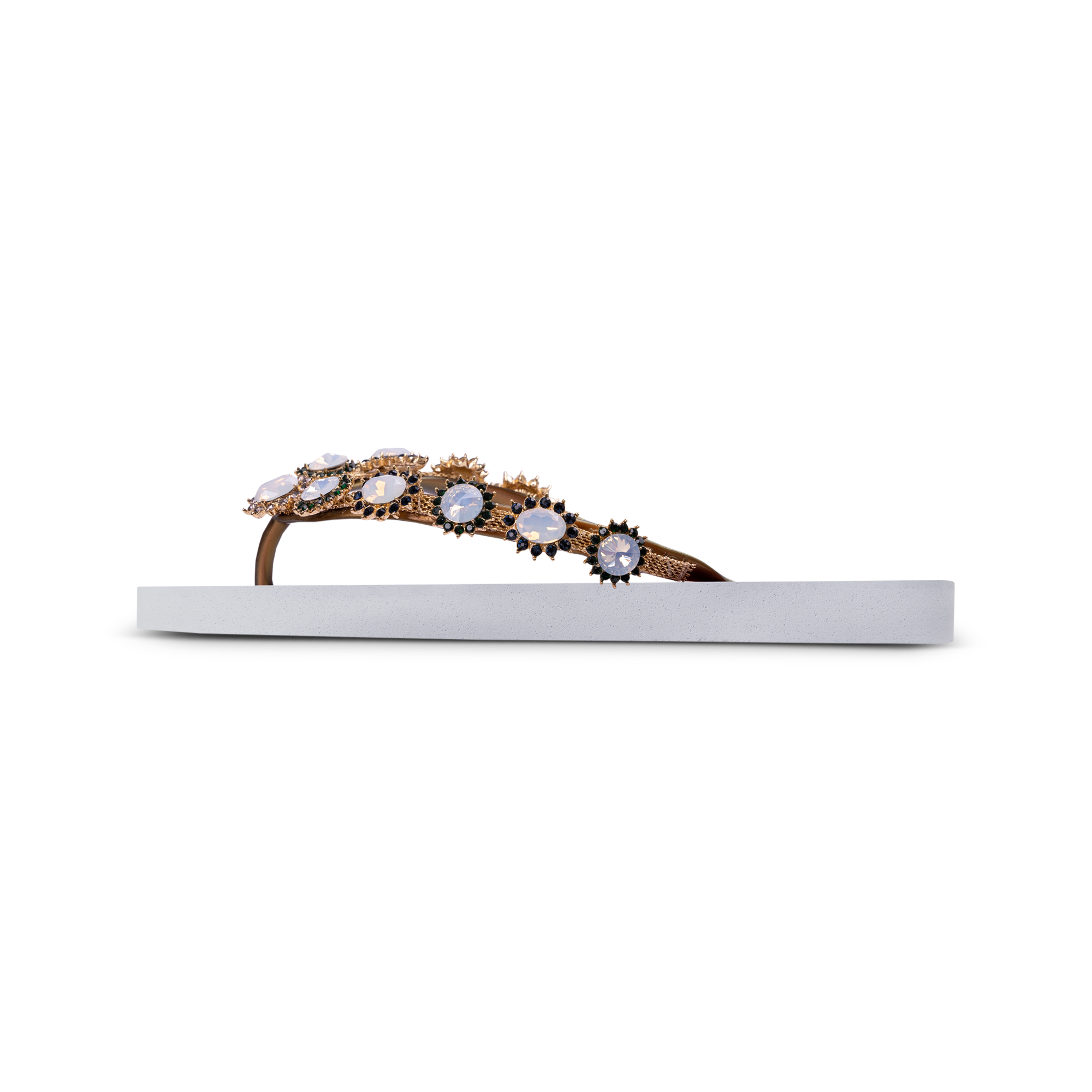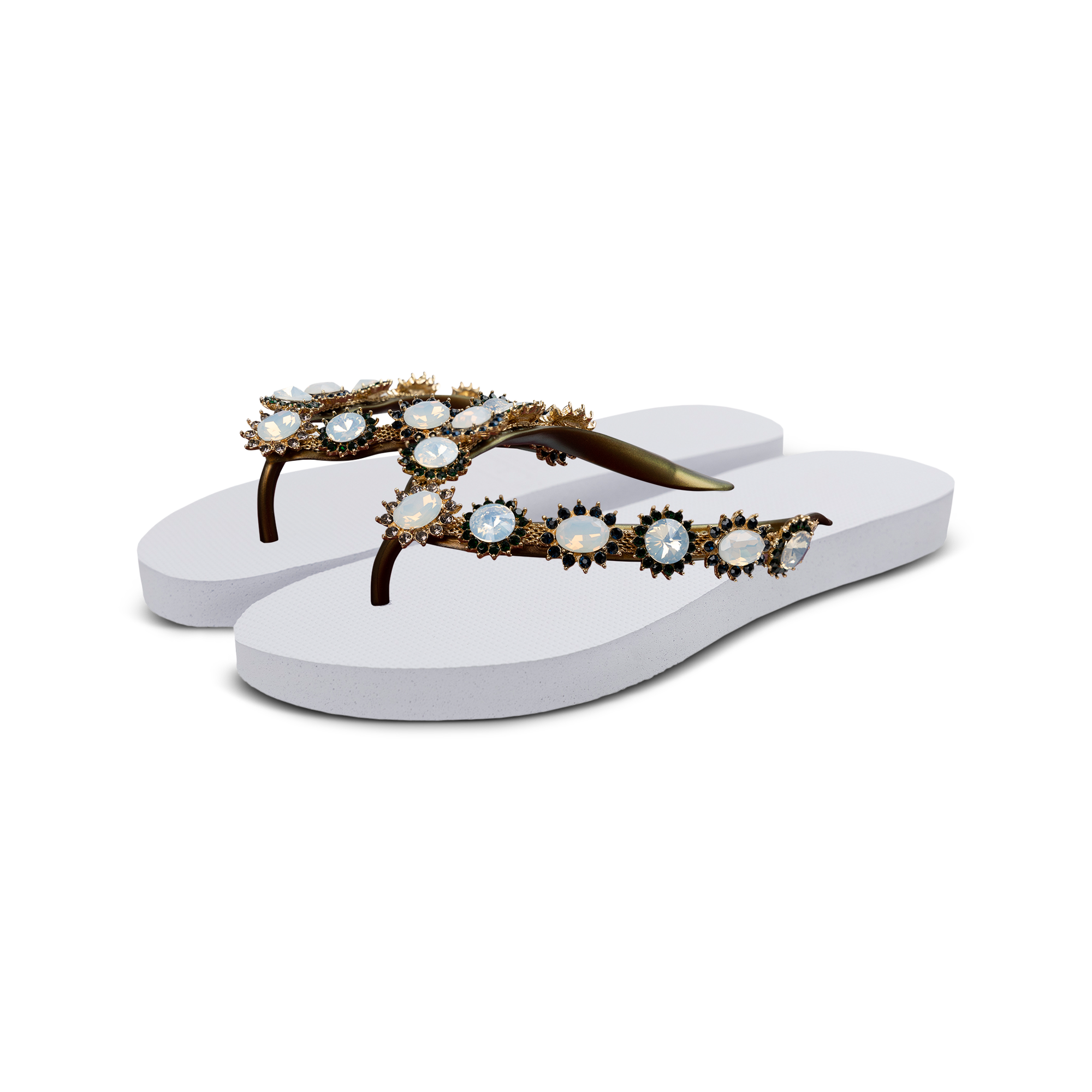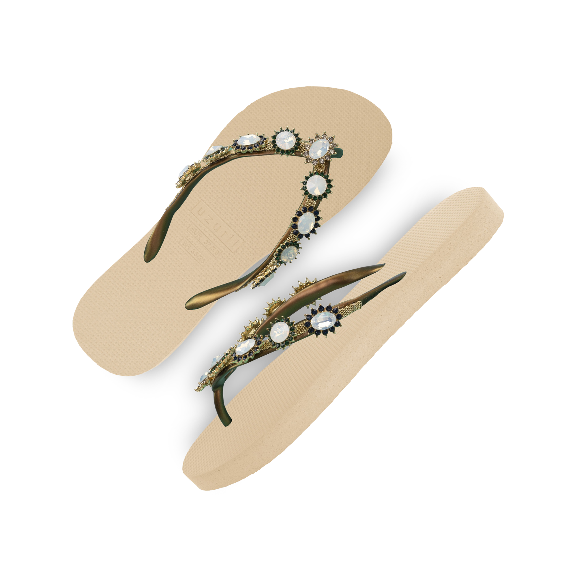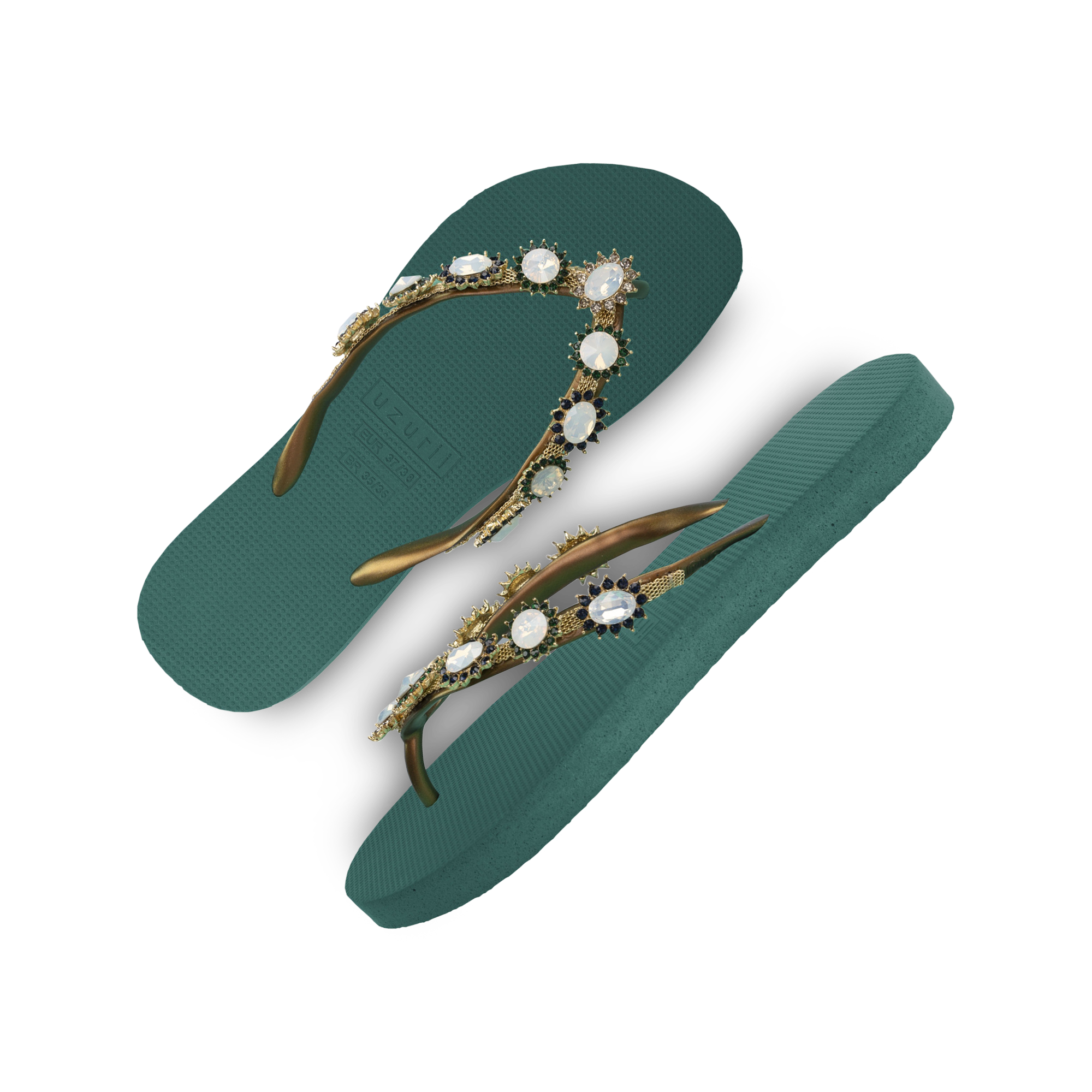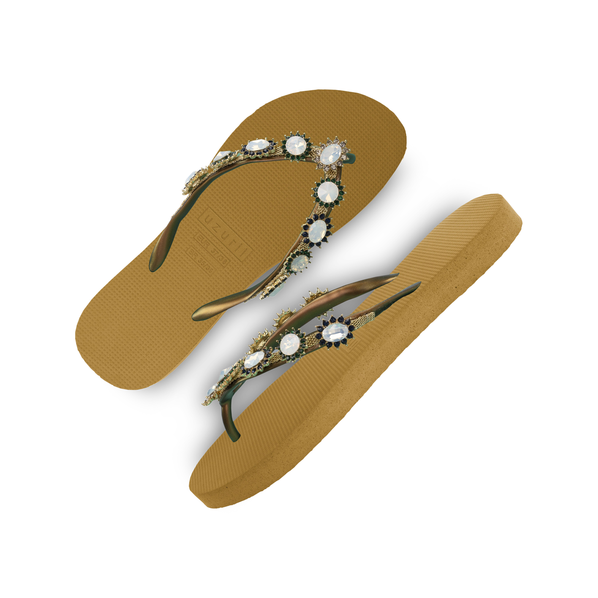 The design for these slippers is completely inspired by style icon Marilyn Monroe. She was known for her ultra-feminine looks. You can recognize the Pearl Monroe by its mother-of-pearl and colored stones. The V is covered with a shiny, silver chain.Our slippers are unique, handmade and designed with care and love. The sole, which feels silky soft on your foot, is made of rubber. The straps are made of PVC. The V is characterized by the original Uzurii logo on the straps. Our slippers are made in China and Brazil.