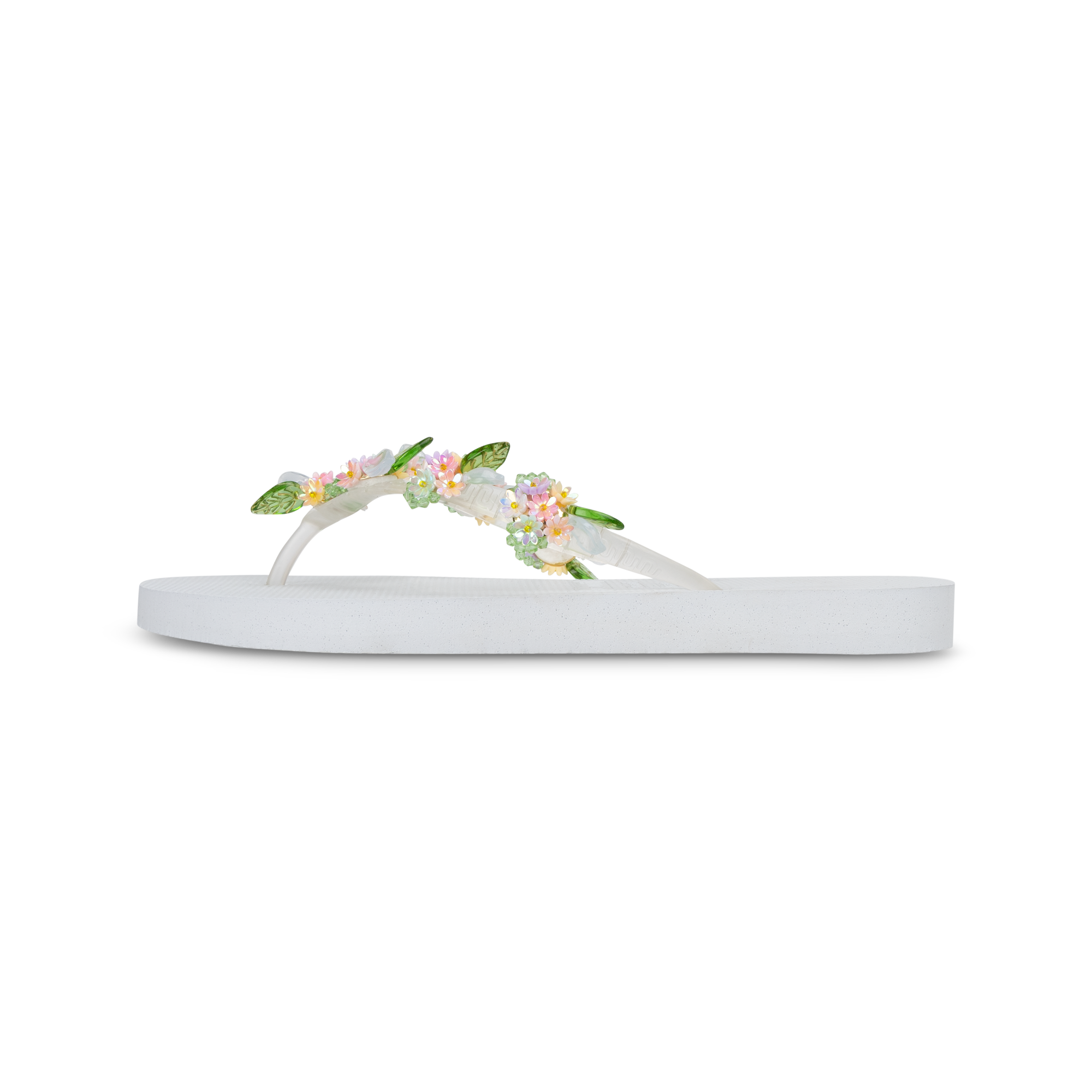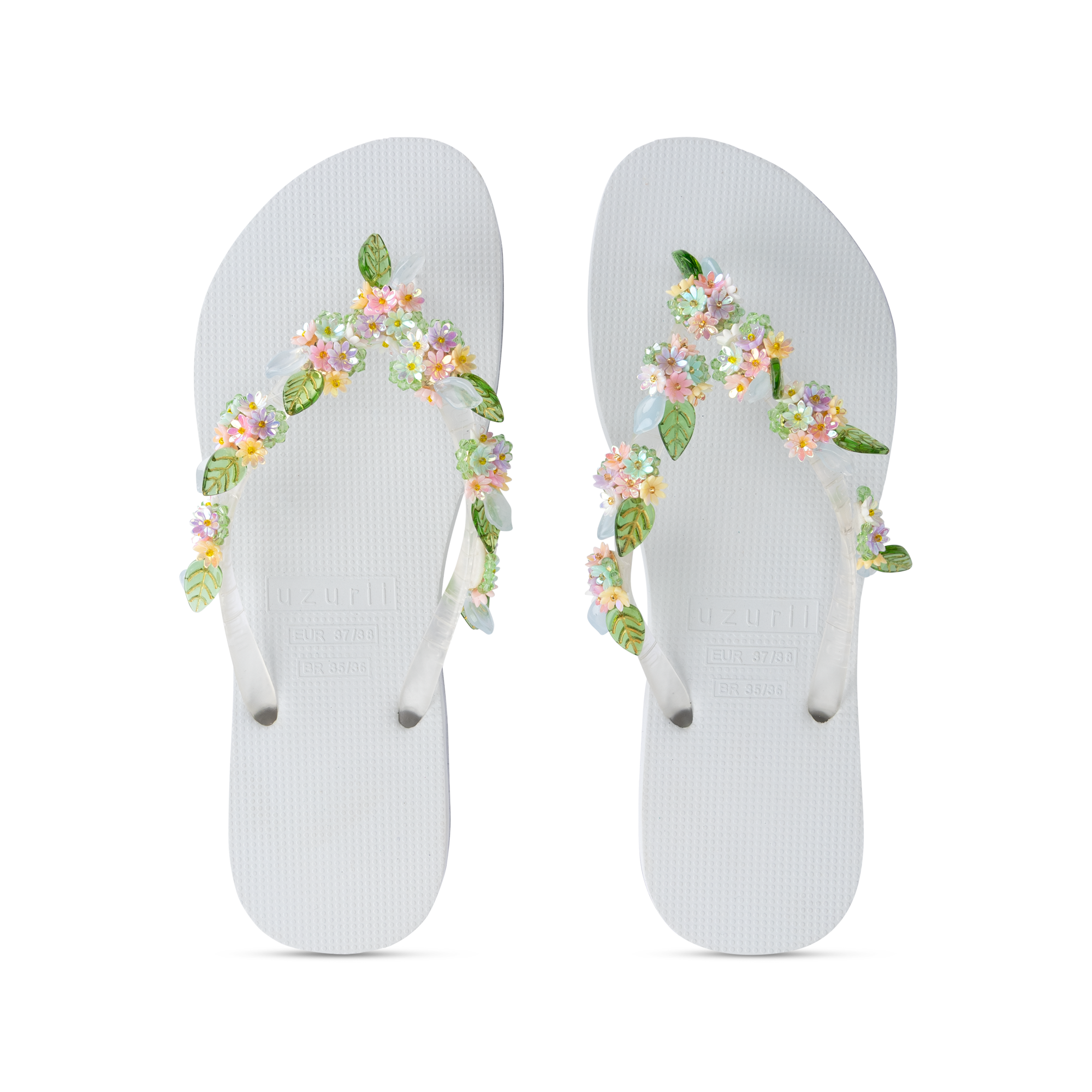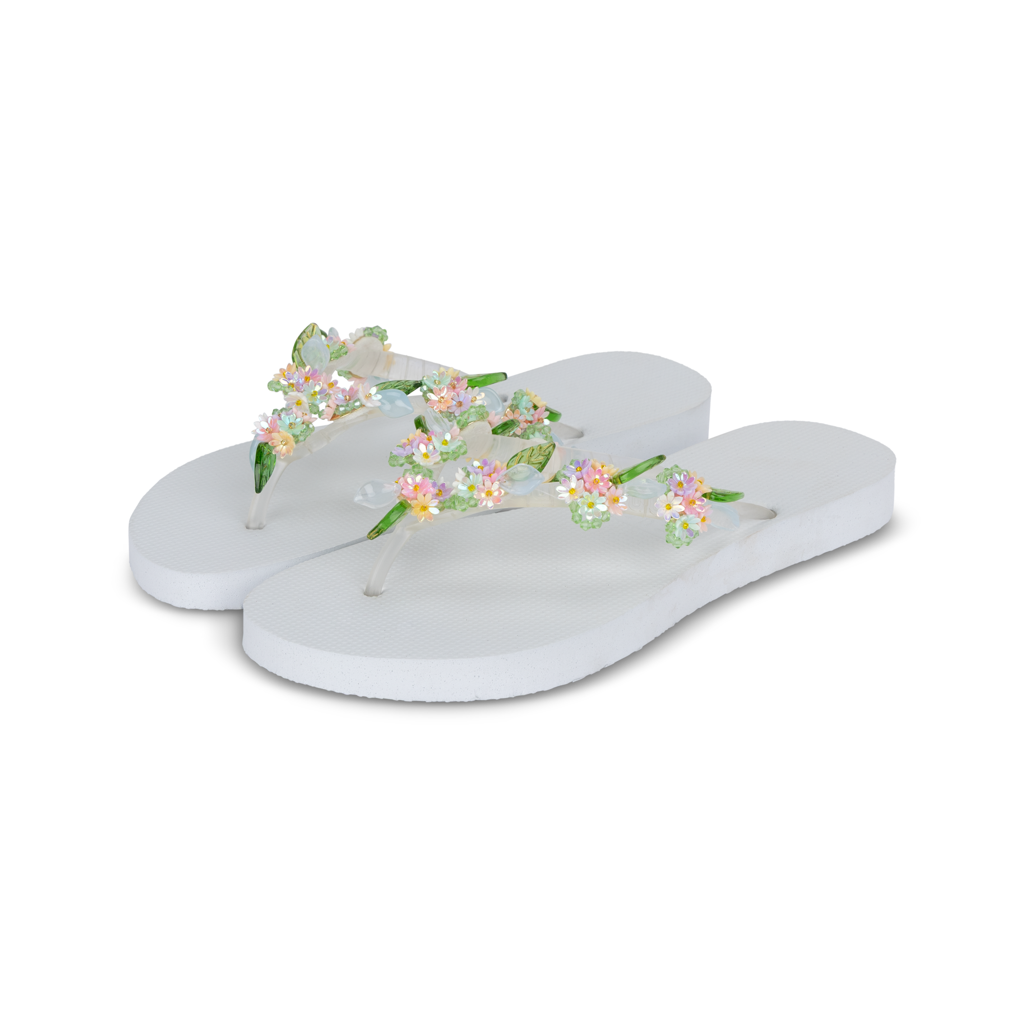 Primavera Mexicana is a celebration of color, nature, and craftsmanship. This handmade design is richly adorned with delicate flowers, glossy leaves, and soft pastel tones, inspired by the vibrant gardens and warm spirit of Mexico. Every detail is carefully applied by hand, making each pair unique. The transparent strap allows the decorations to shine beautifully and creates a light, elegant look. Primavera Mexicana feels feminine, fresh, and refined, while the comfortable design ensures pleasant wear throughout the day. A perfect choice for sunny days, summer celebrations, or as a romantic accent to a stylish outfit.