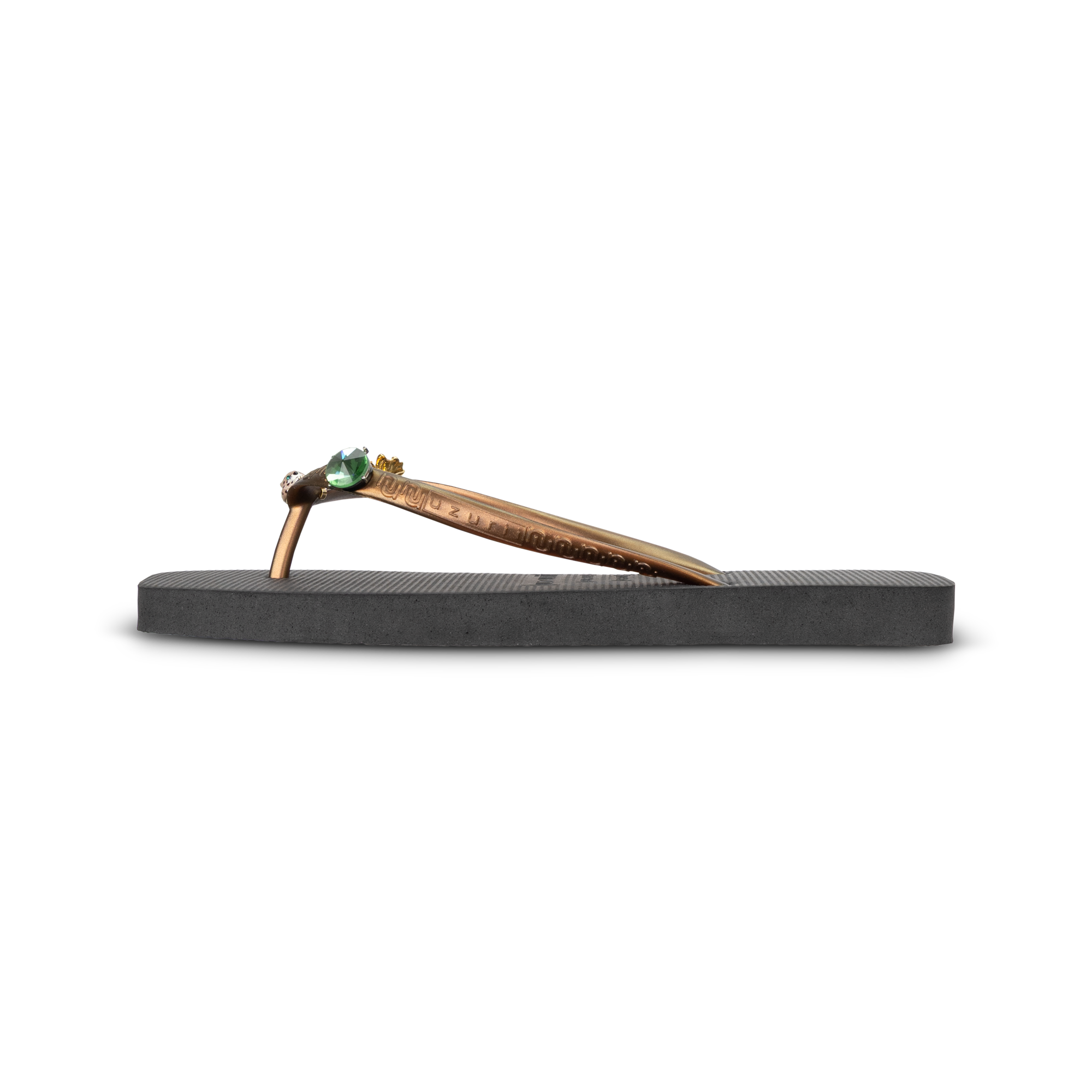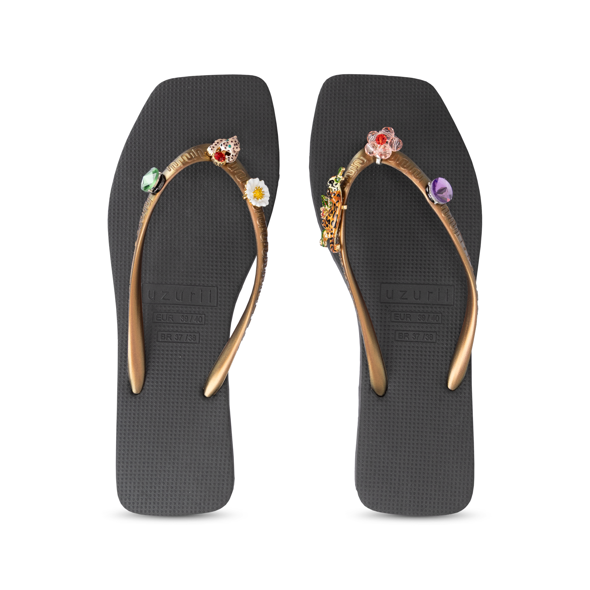 The Flore Square Grande is a bold and elegant interpretation of summer luxury. This handmade slipper stands out with its square shape and softly colored sole, combined with richly decorated straps featuring floral details, sparkling stones, and playful color accents. The larger decorative elements give this model a powerful, fashion-forward look. Thanks to its comfortable yet sturdy sole, the Flore Square Grande offers optimal comfort, while the striking flowers and stones create a true eye-catcher. Ideal for women who dare to choose a statement look without compromising on comfort.