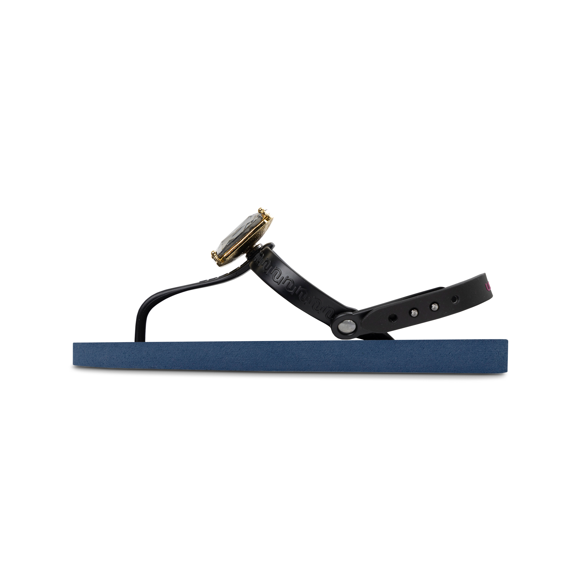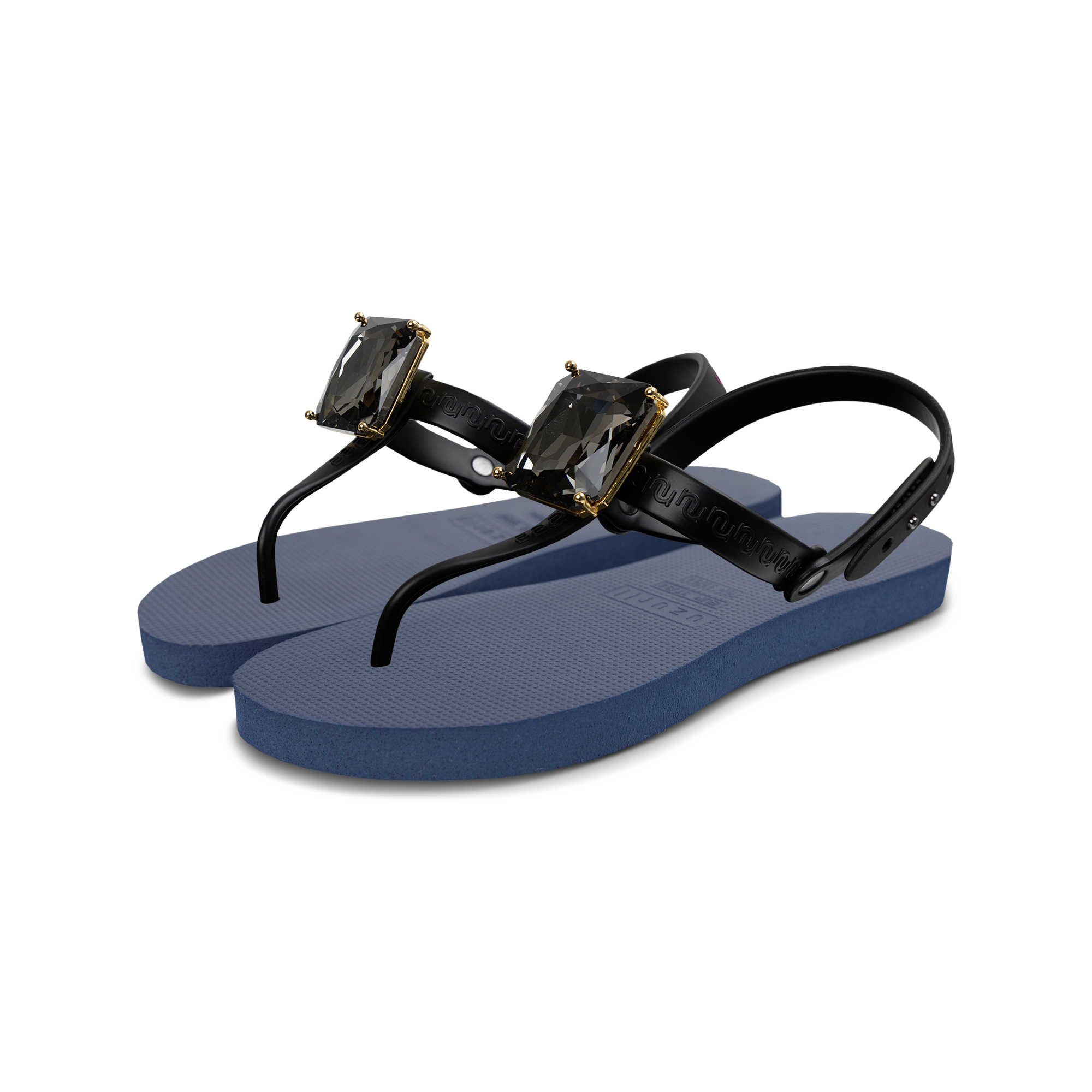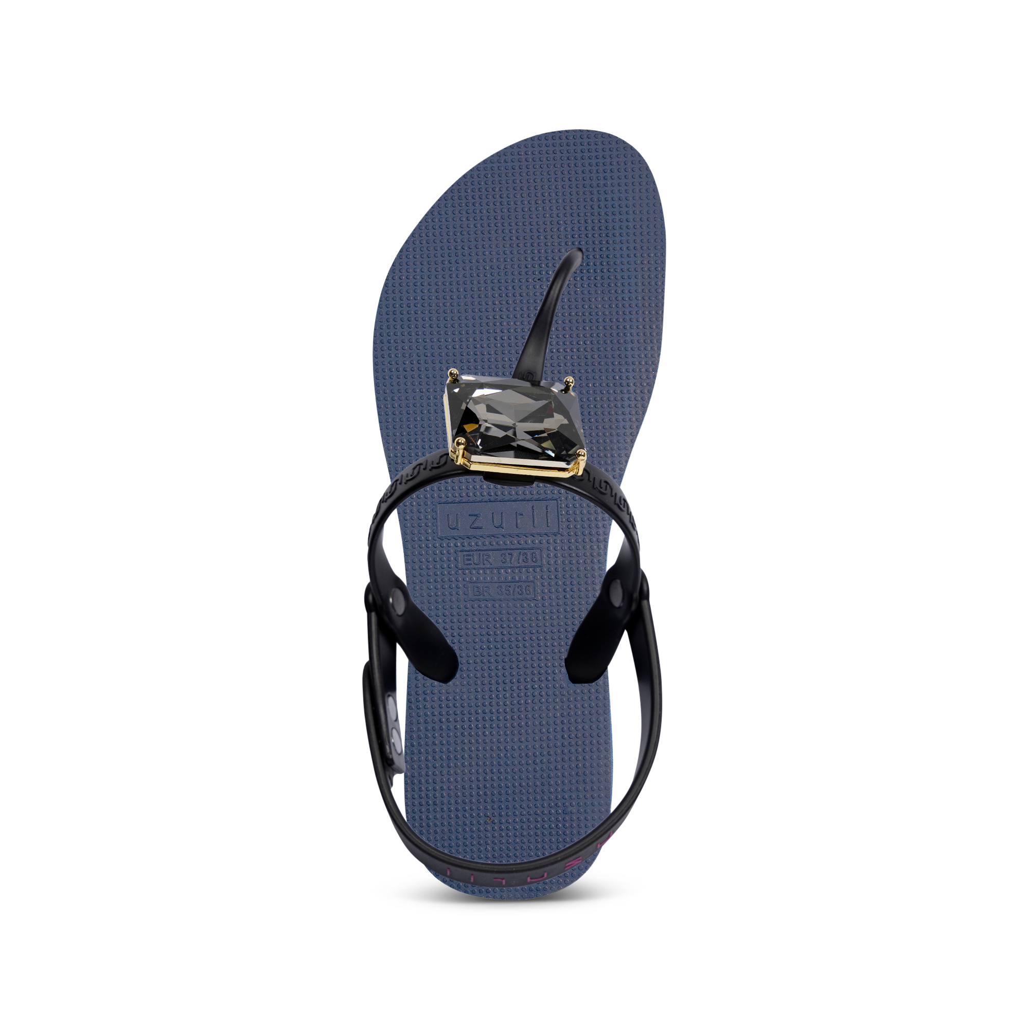 De Selena Diamond Blue staat bekend om haar grote zilverkleurige steen. De gouden omlijning rond de grote steen geeft een extra verfijnd gevoel. Itís all about the details. Versierd met een zogenaamde switch button, kun je de knop (steen) zelf verwisselen met een groot aantal opties uit onze accessoirelijn. De V wordt versierd door het originele Uzurii logo over de bandjes. Op zoek naar wat extra comfort? Dan zit je met de Selena goed. De bandje over de hiel geeft je wat extra steun.Onze slippers zijn uniek, handgemaakt en met aandacht ontworpen. De zool, die zijdezacht aanvoelt aan je voet, is gemaakt van rubber. De bandjes zijn gemaakt van PVC. De V kenmerkt zich door het originele Uzurii logo op de bandjes. Onze slippers worden gemaakt in China en BraziliÎ.