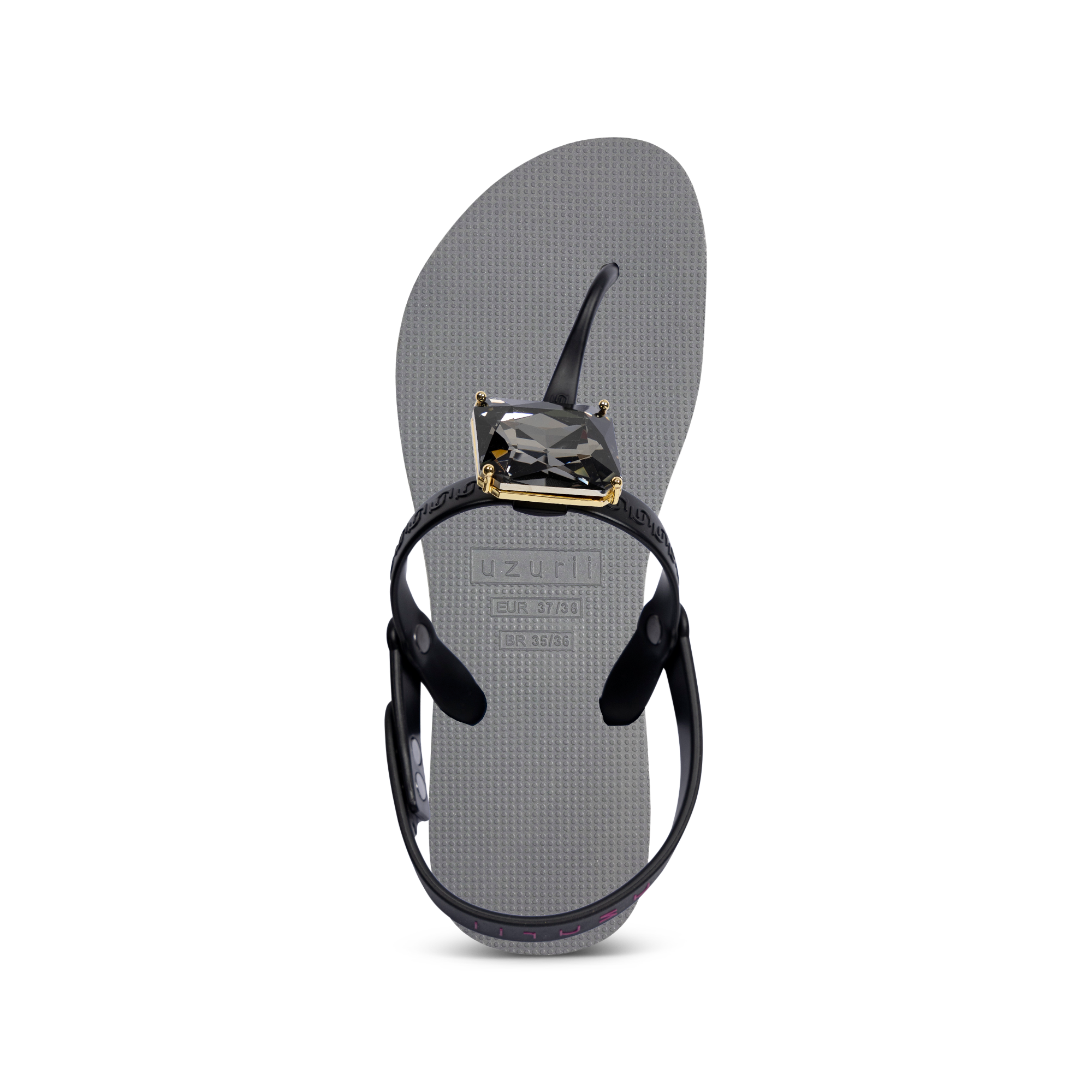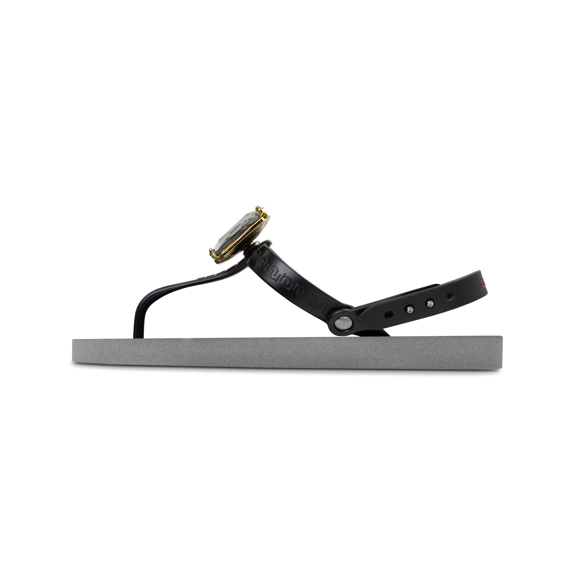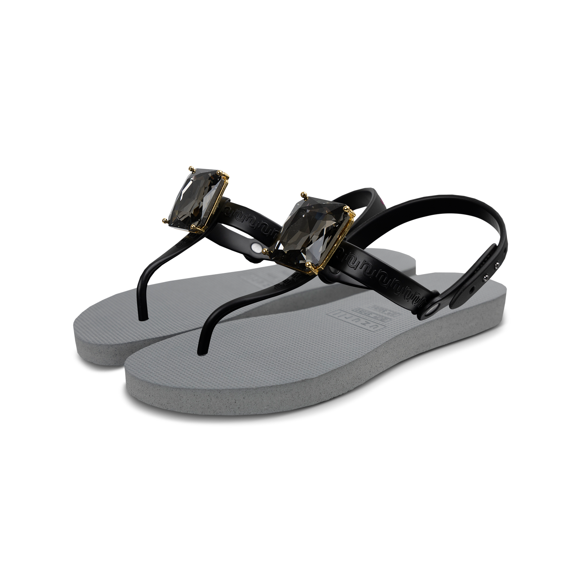 De Selena Diamond Blue staat bekend om haar grote zilverkleurige steen. De gouden omlijning rond de grote steen geeft een extra verfijnd gevoel. Itís all about the details. Versierd met een zogenaamde switch button, kun je de knop (steen) zelf verwisselen met een groot aantal opties uit onze accessoirelijn. De V wordt versierd door het originele Uzurii logo over de bandjes. Op zoek naar wat extra comfort? Dan zit je met de Selena goed. De bandje over de hiel geeft je wat extra steun.Onze slippers zijn uniek, handgemaakt en met aandacht ontworpen. De zool, die zijdezacht aanvoelt aan je voet, is gemaakt van rubber. De bandjes zijn gemaakt van PVC. De V kenmerkt zich door het originele Uzurii logo op de bandjes. Onze slippers worden gemaakt in China en BraziliÎ.