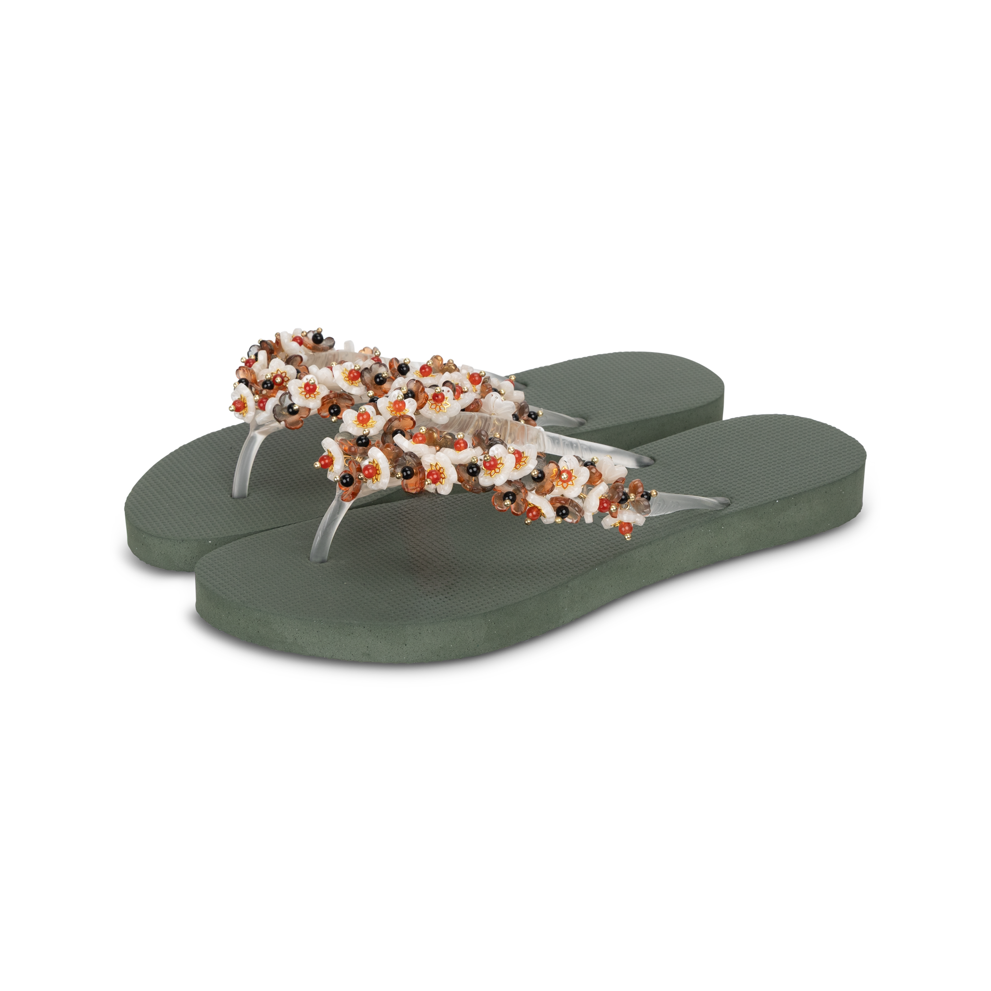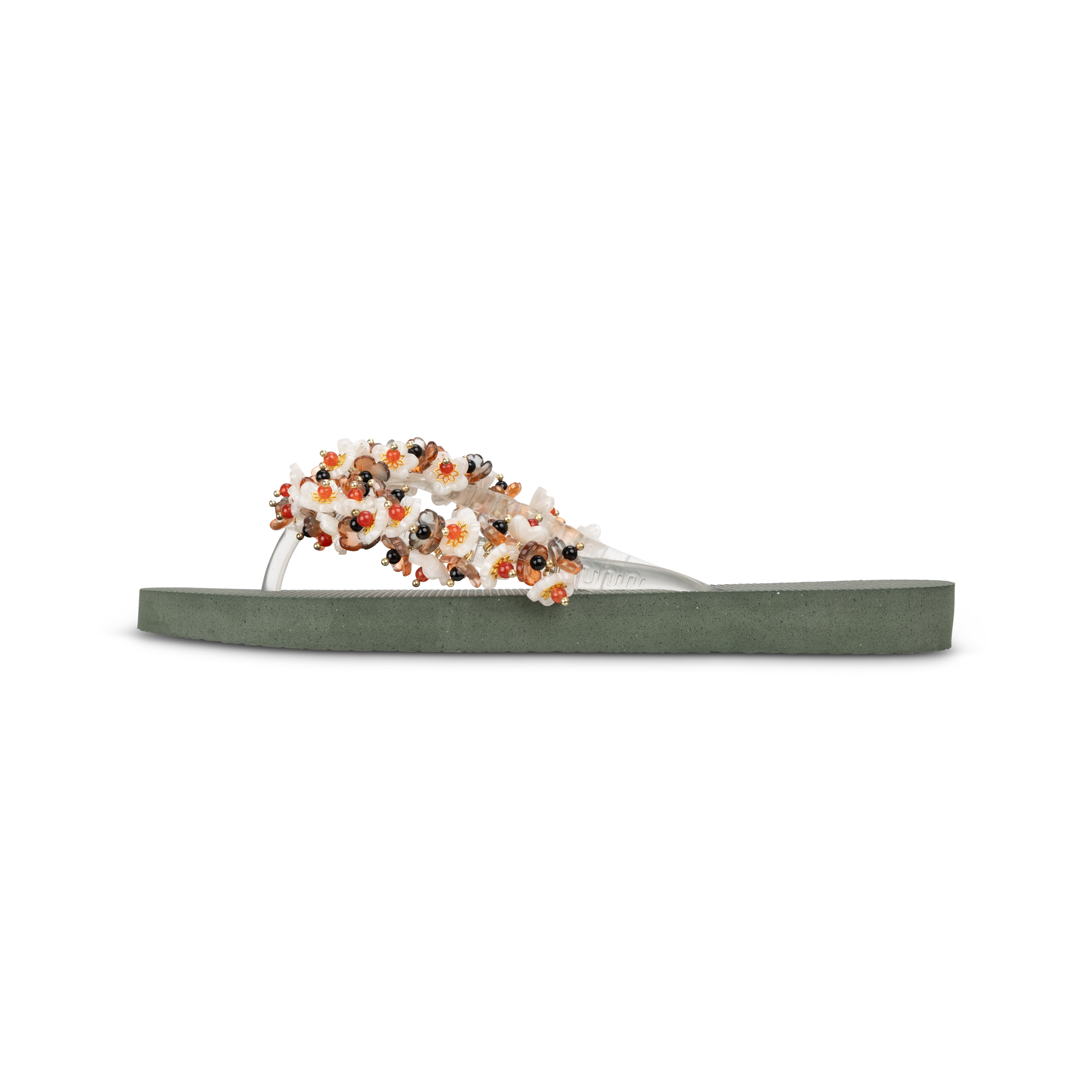De Tulum Bloom is een ode aan zomerse elegantie met een natuurlijke twist. Deze handgemaakte slipper combineert een zool met rijk versierde banden vol bloemen, kralen en subtiele glansdetails. Elk detail is met de hand aangebracht, waardoor geen paar exact hetzelfde is. De zachte maar stevige zool biedt optimaal comfort, terwijl de decoratieve bloemen zorgen voor een vrouwelijke, luxe uitstraling. Perfect voor een zomerse wandeling, een beach club lunch of een stijlvolle city look.