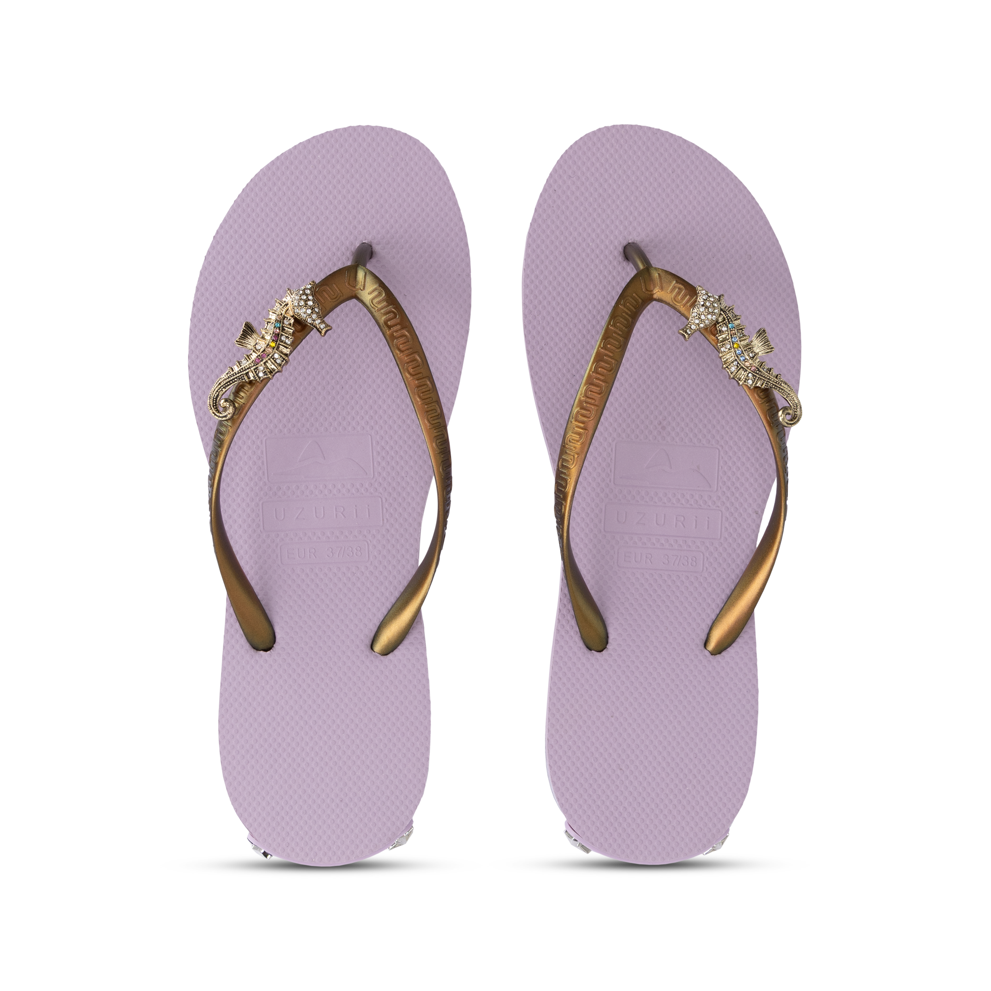 De Seahorse Switch is geïnspireerd op de elegante vormen van de zee. De verfijnde zeepaard-clip, rijkelijk bezet met sprankelende steentjes, geeft deze slipper een unieke en luxueuze uitstraling. Het goudkleurige bandje vormt een prachtig contrast met de zwarte zool en zorgt voor een krachtige, stijlvolle look. Dankzij het Switch-concept kun je de clip verwisselen en je slipper aanpassen aan je mood of outfit. Van beach chic tot evening glam – één slipper, eindeloze mogelijkheden. De zool is lichtgewicht, flexibel en comfortabel, ontworpen voor zowel binnen als buiten. Zoals je van Uzurii mag verwachten, combineert dit model glamour met draagcomfort.