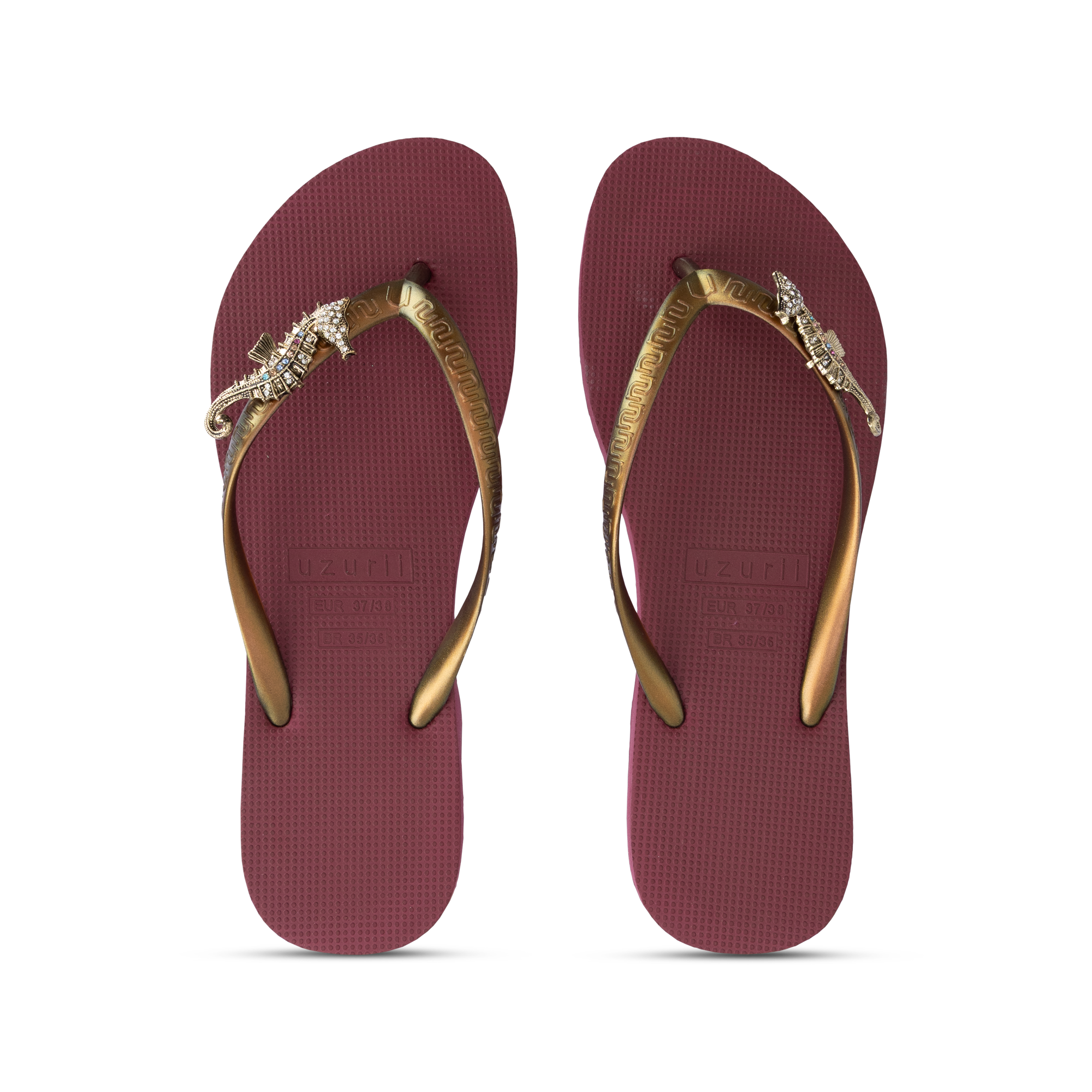 De Seahorse Switch is geïnspireerd op de elegante vormen van de zee. De verfijnde zeepaard-clip, rijkelijk bezet met sprankelende steentjes, geeft deze slipper een unieke en luxueuze uitstraling. Het goudkleurige bandje vormt een prachtig contrast met de zwarte zool en zorgt voor een krachtige, stijlvolle look. Dankzij het Switch-concept kun je de clip verwisselen en je slipper aanpassen aan je mood of outfit. Van beach chic tot evening glam – één slipper, eindeloze mogelijkheden. De zool is lichtgewicht, flexibel en comfortabel, ontworpen voor zowel binnen als buiten. Zoals je van Uzurii mag verwachten, combineert dit model glamour met draagcomfort.