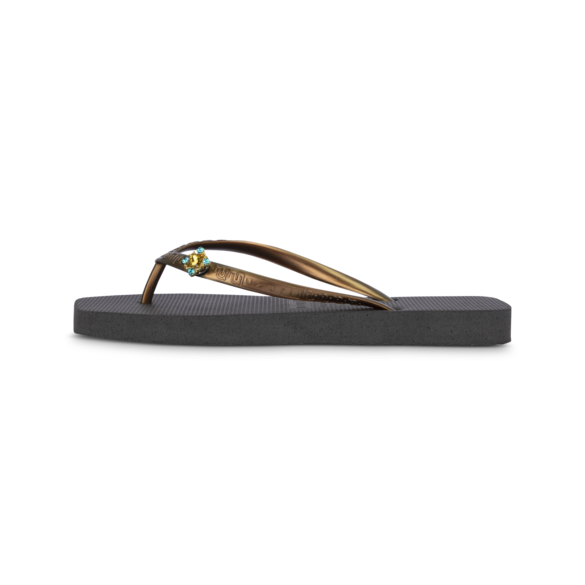 De Beach Switch herken je aan haar vierkante zool. Dit geeft een edgy en verfijnde uitstraling en maakt deze teenslipper uniek. Door de druk knop op de V, kun je de switch button makkelijk zelf verwisselen. Kies uit een groot aantal stenen uit onze accessoirelijn. Zo tover je jouw paar flip flops eenvoudig om tot een nieuwe look!Onze slippers zijn uniek, handgemaakt en met zorg en liefde ontworpen. De zool, die zijdezacht aanvoelt aan je voet, is gemaakt van rubber. De bandjes zijn gemaakt van PVC. De V kenmerkt zich door het originele Uzurii logo op de bandjes. Onze slippers worden gemaakt in China en BraziliÎ.