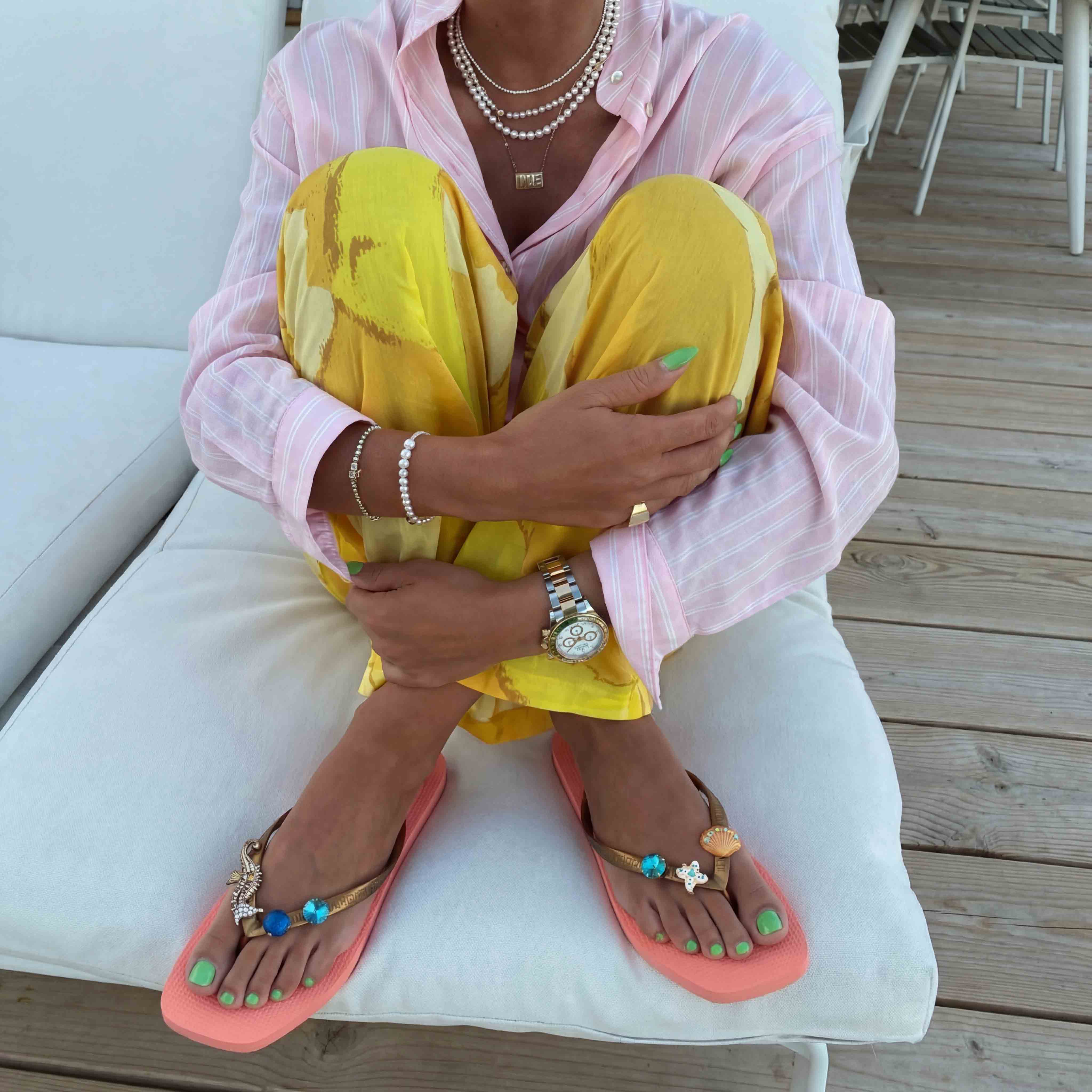 De Flore Square Grande is een uitgesproken en elegante interpretatie van zomerse luxe. Deze handgemaakte slipper valt op door zijn vierkante vorm en zachtgekleurde zool, gecombineerd met rijk versierde banden vol bloemdetails, fonkelende stenen en speelse kleuraccenten. De grotere decoratieve elementen geven dit model een krachtige, modieuze uitstraling. Dankzij de comfortabele maar stevige zool biedt de Flore Square Grande optimaal draagcomfort, terwijl de opvallende bloemen en stenen zorgen voor een echte eyecatcher. Ideaal voor vrouwen die durven te kiezen voor een statement look, zonder in te leveren op comfort.